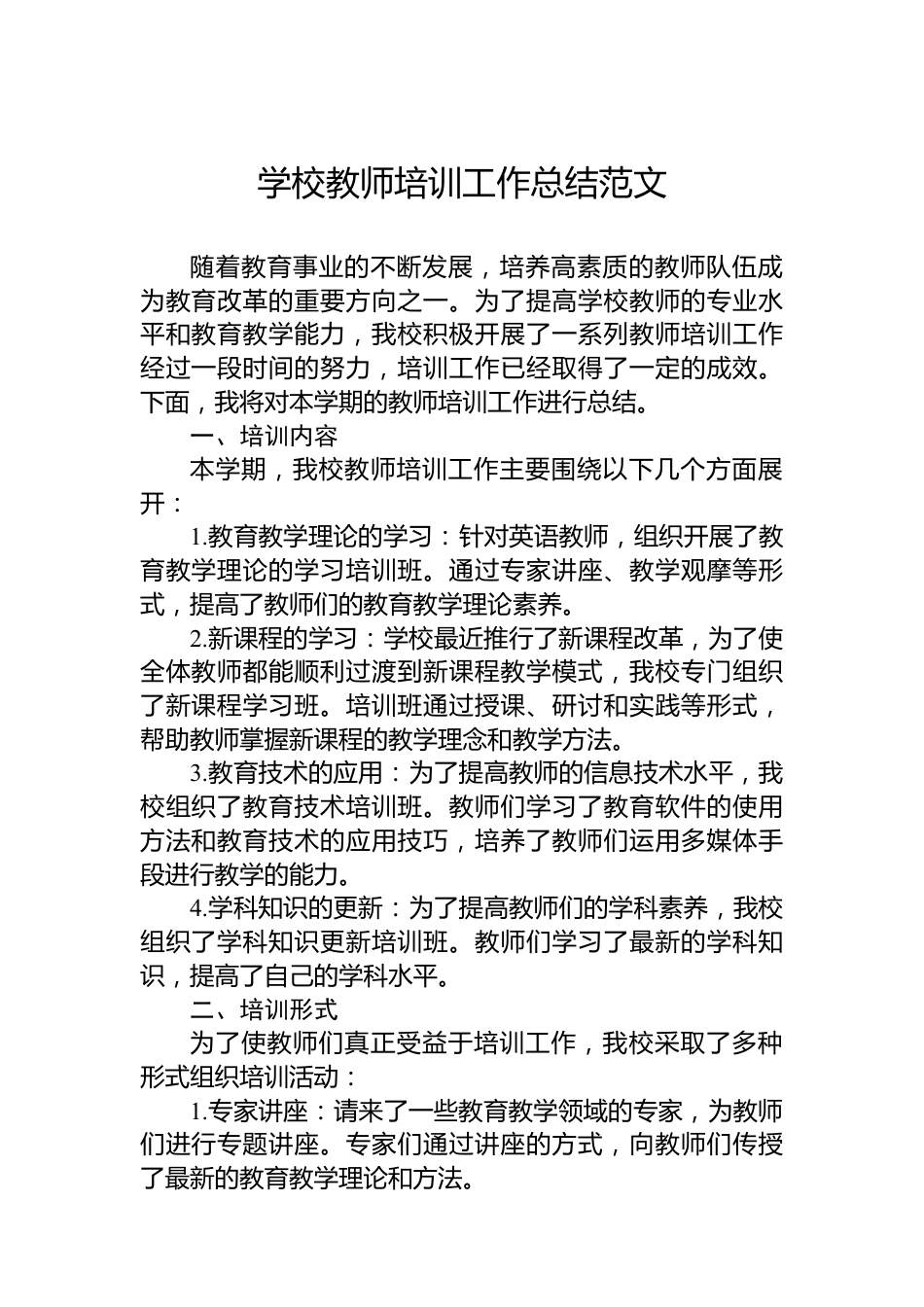 學(xué)校教師培訓(xùn)工作總結(jié)范文