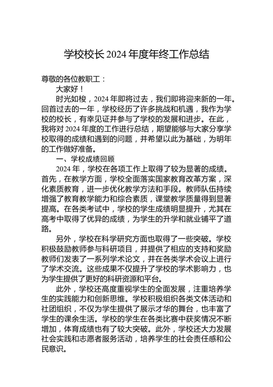 學(xué)校校長(zhǎng)2024年度年終工作總結(jié)