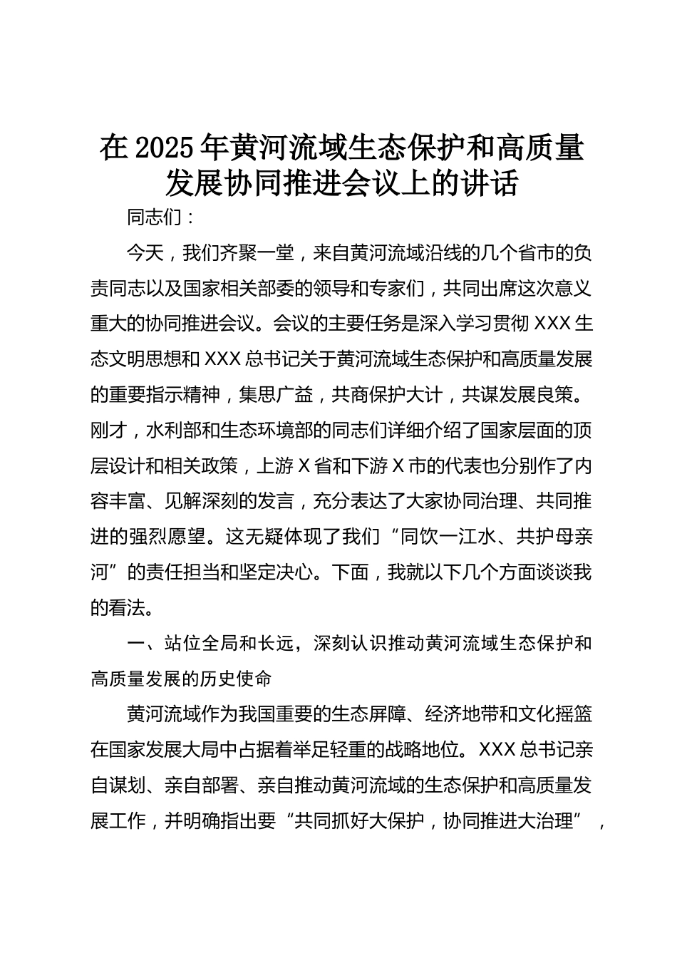 在2025年黃河流域生態(tài)保護(hù)和高質(zhì)量發(fā)展協(xié)同推進(jìn)會(huì)議上的講話VIP免費(fèi)