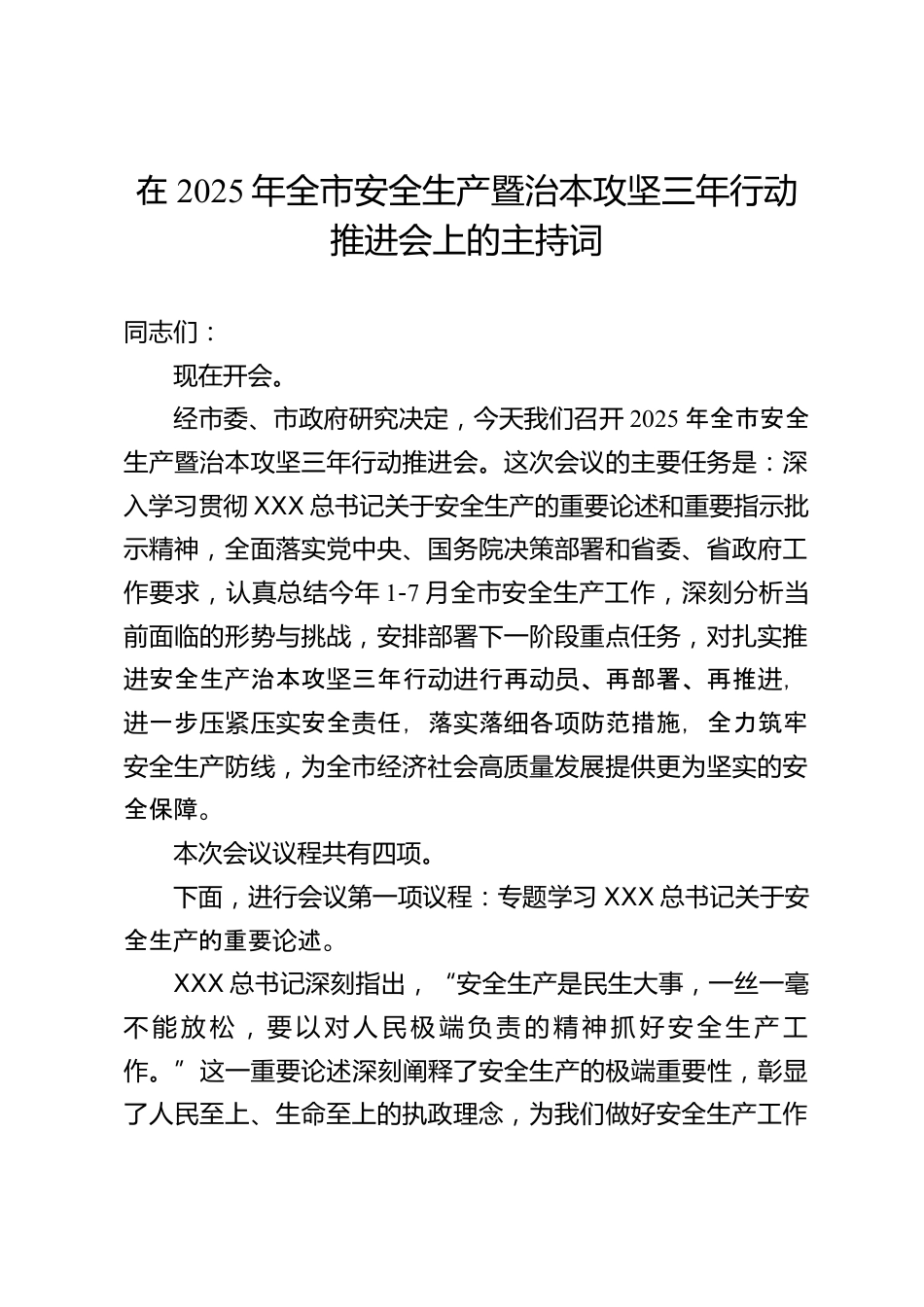 在2025年全市安全生產(chǎn)暨治本攻堅(jiān)三年行動(dòng)推進(jìn)會(huì)上的主持詞VIP免費(fèi)