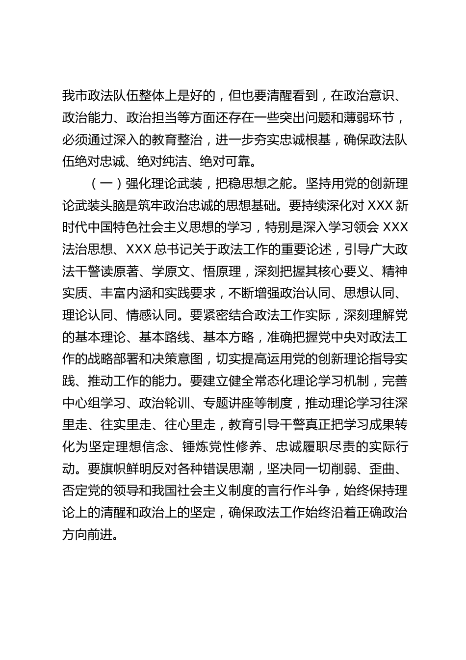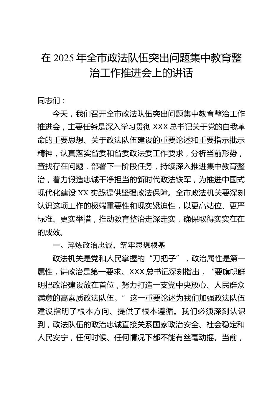 在2025年全市政法隊(duì)伍突出問題集中教育整治工作推進(jìn)會(huì)上的講話