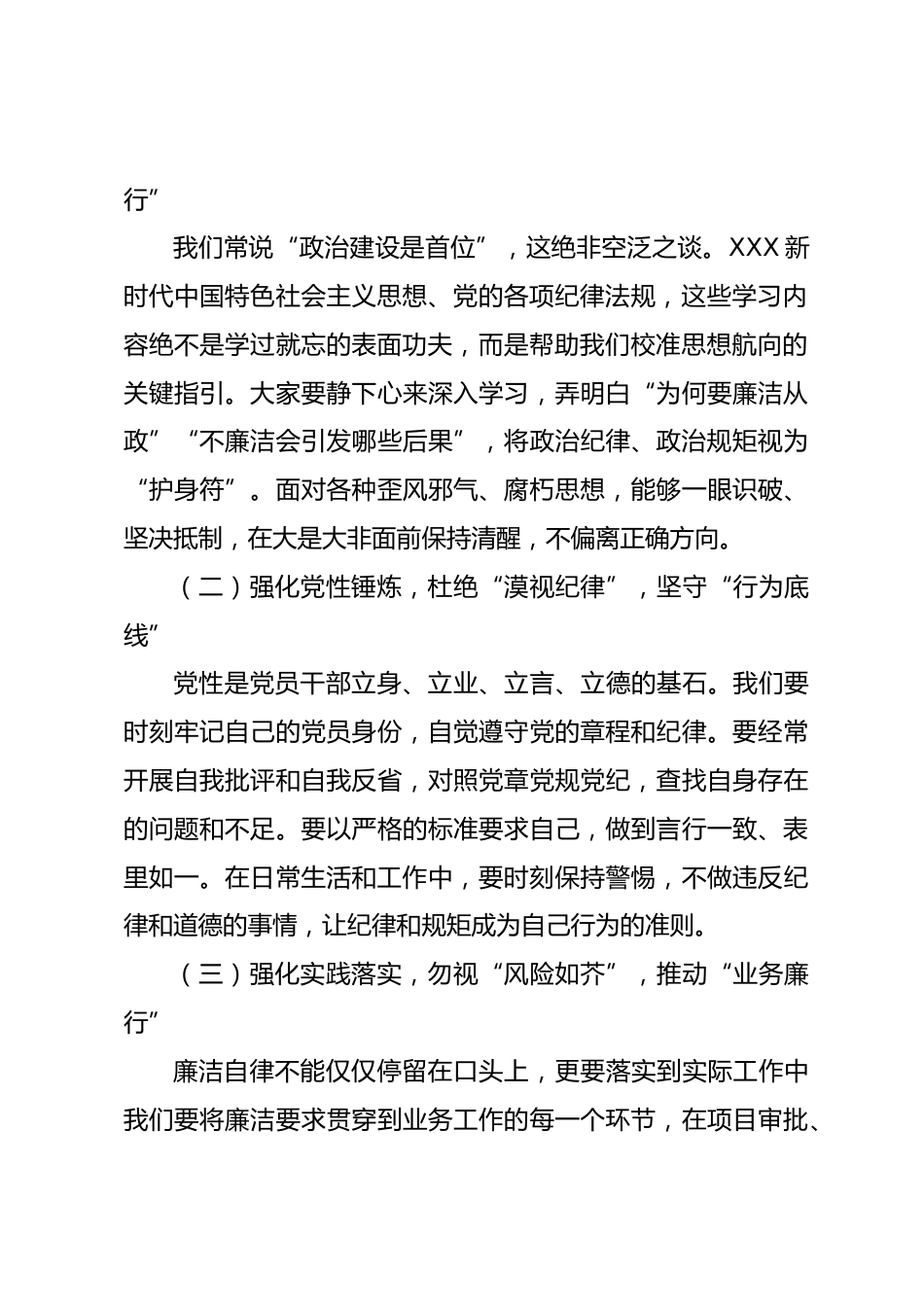 在全區(qū)2025年國(guó)慶節(jié)中秋節(jié)節(jié)前廉政提醒談話提綱同志們:“廉節(jié)”好過,“廉關(guān)”難守。民間有云:“廉不廉,看過年;潔不潔,看過節(jié)?!泵康焦?jié)慶時(shí)分,正是對(duì)我們黨員干部廉潔自律的一場(chǎng)重大考驗(yàn)。當(dāng)下,國(guó)慶、中秋雙節(jié)將至,諸如違規(guī)收送禮品、公款吃喝、公車私用這類“四風(fēng)”老問題,極易在節(jié)日的熱鬧氛圍中死灰復(fù)燃。今天召開這個(gè)廉政提醒會(huì),絕非走形式、讀文件,就是想給大家提個(gè)醒,再次強(qiáng)調(diào)紀(jì)律規(guī)矩,讓大家時(shí)刻繃緊“廉潔弦”,不踩紅線、不越底線、不碰高壓線,共同營(yíng)造風(fēng)清氣正的節(jié)日氛圍,過一個(gè)安心、舒心的佳節(jié)。下面,我提三點(diǎn)要求,與大家交流探討。一、高...