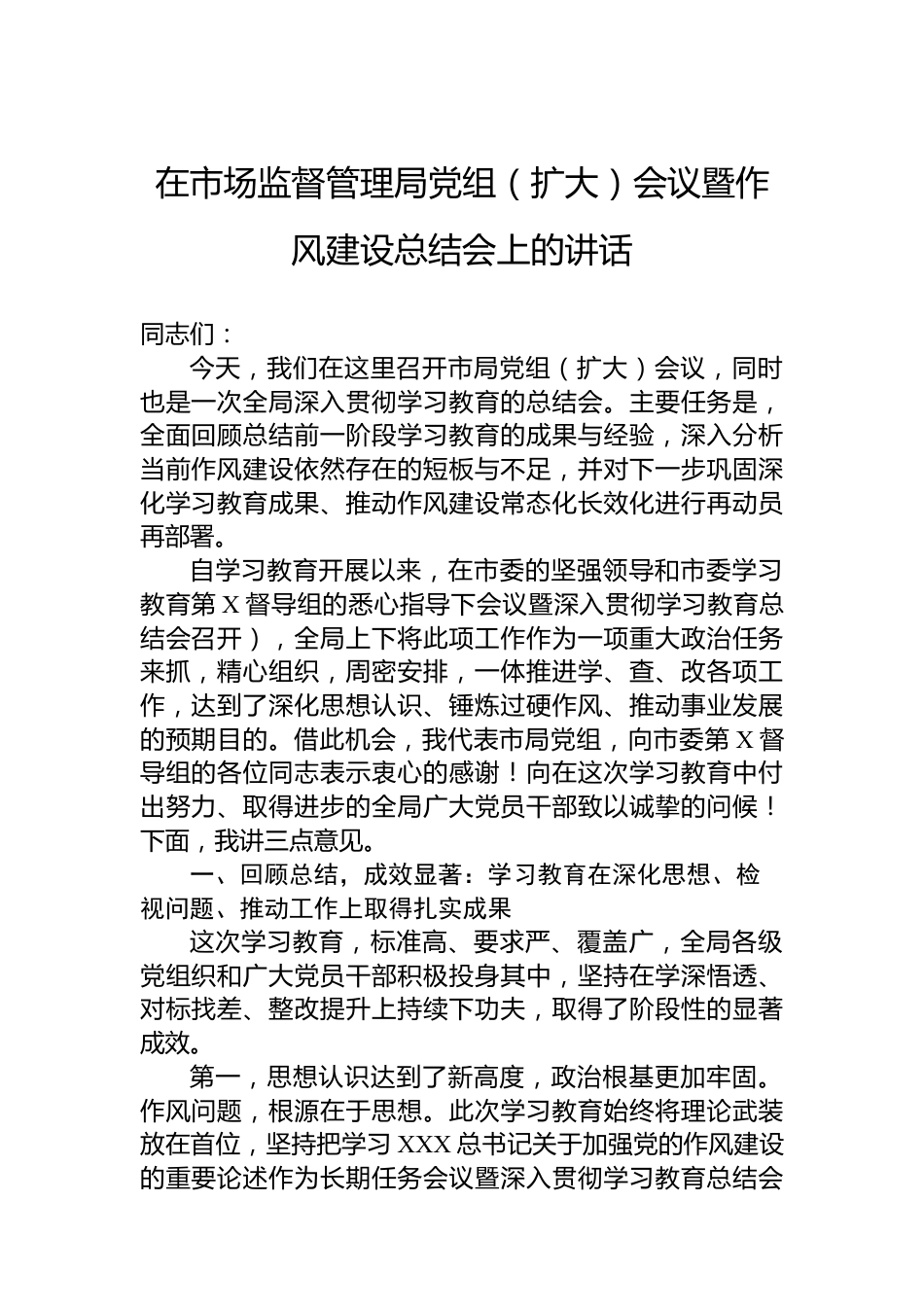 在市場(chǎng)監(jiān)督管理局黨組(擴(kuò)大)會(huì)議暨作風(fēng)建設(shè)總結(jié)會(huì)上的講話