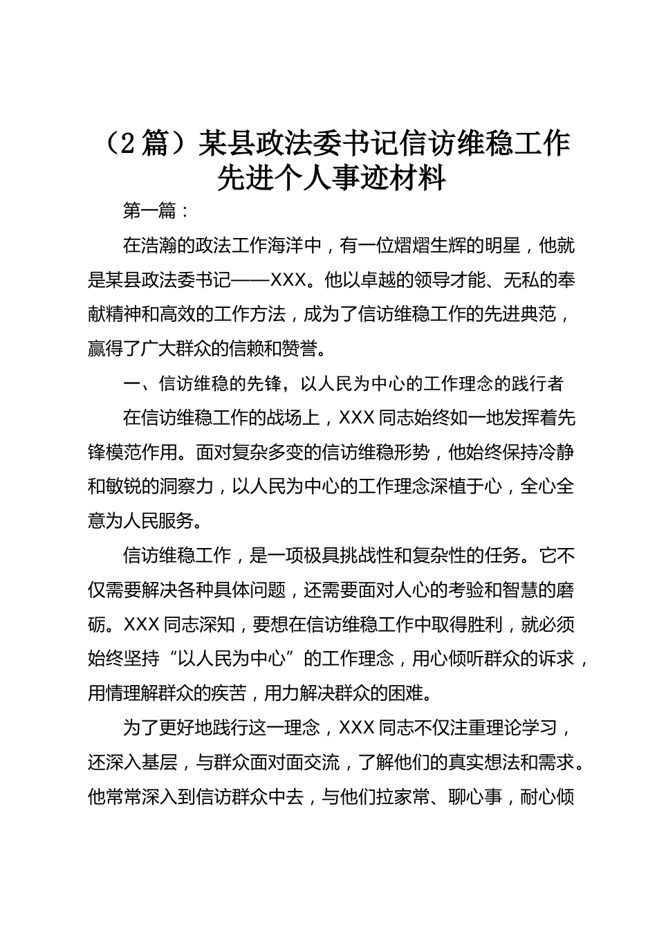 (2篇)某縣政法委書記信訪維穩(wěn)工作先進(jìn)個(gè)人事跡材料