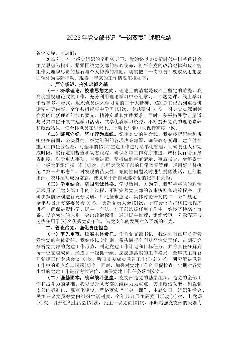 2025年黨支部書(shū)記“一崗雙責(zé)”述職總結(jié)