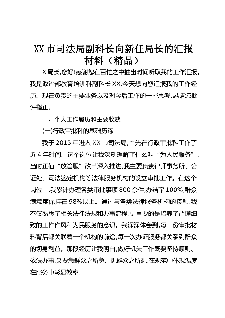 XX市司法局副科長向新任局長的匯報材料(精品)VIP免費