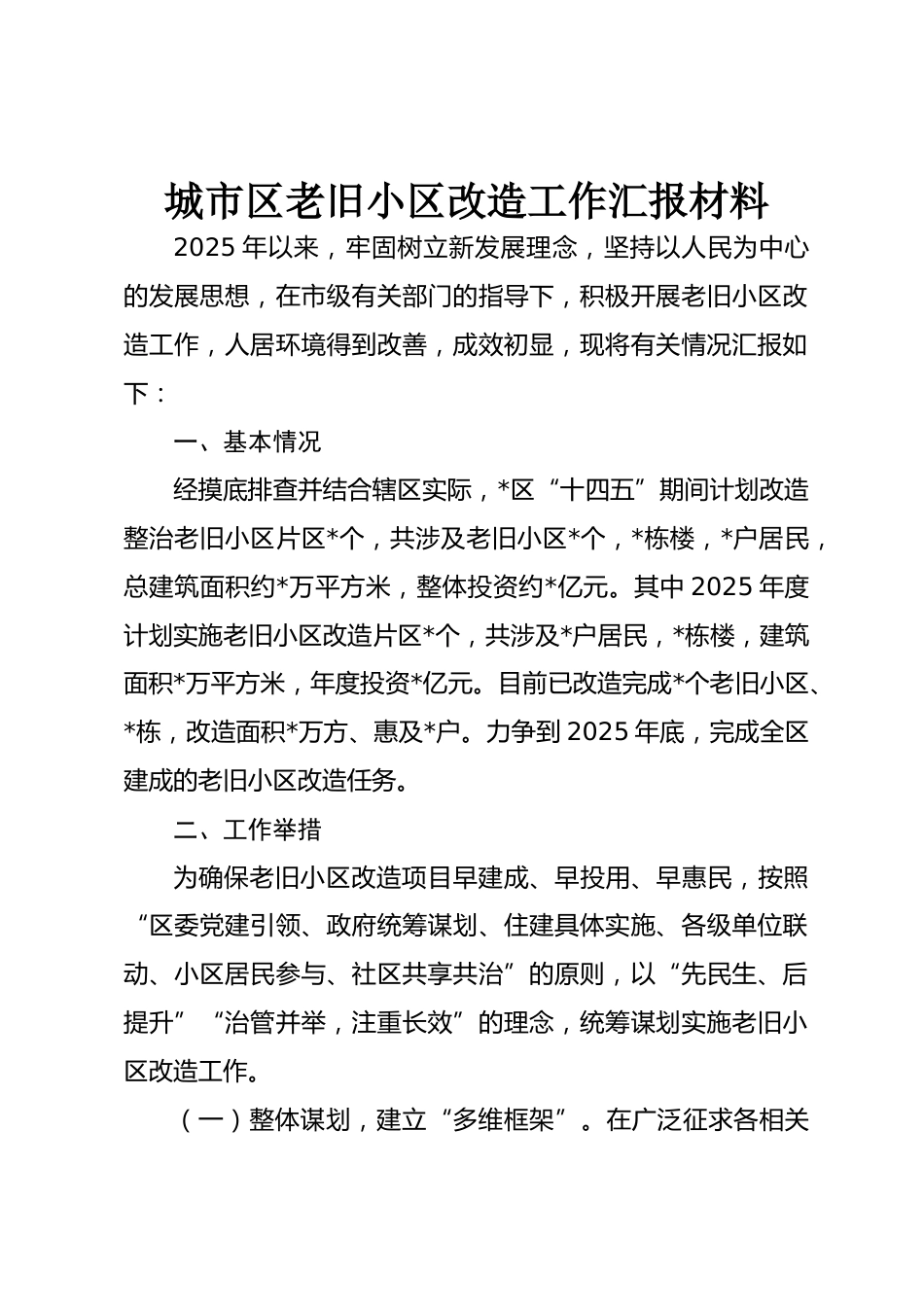 城市區(qū)老舊小區(qū)改造工作匯報(bào)材料