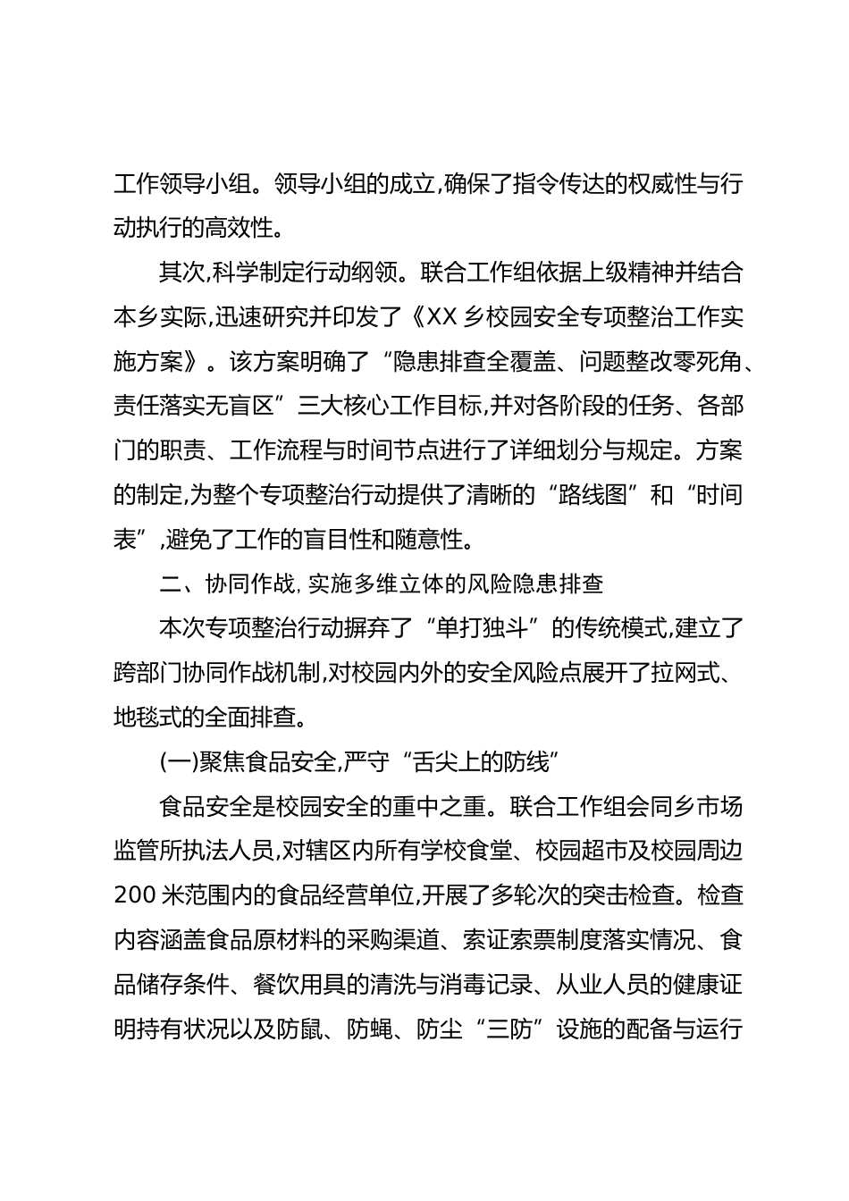 關(guān)于XX鄉(xiāng)2025年度校園安全專項(xiàng)整治工作的情況報(bào)告