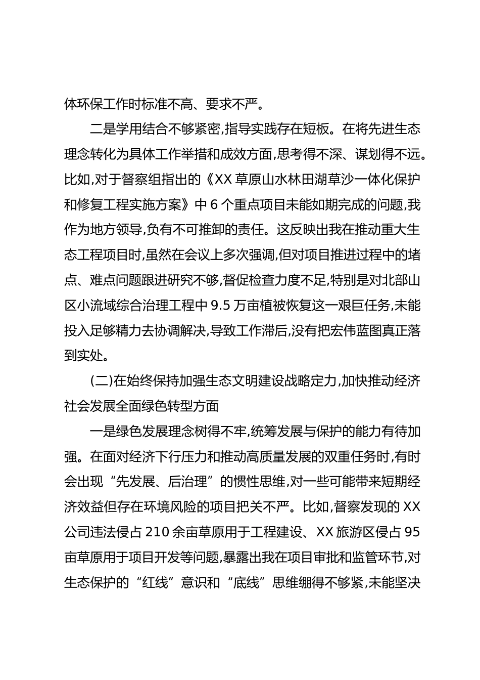 關于對中央生態(tài)環(huán)境保護督察反饋問題的個人對照檢查材料