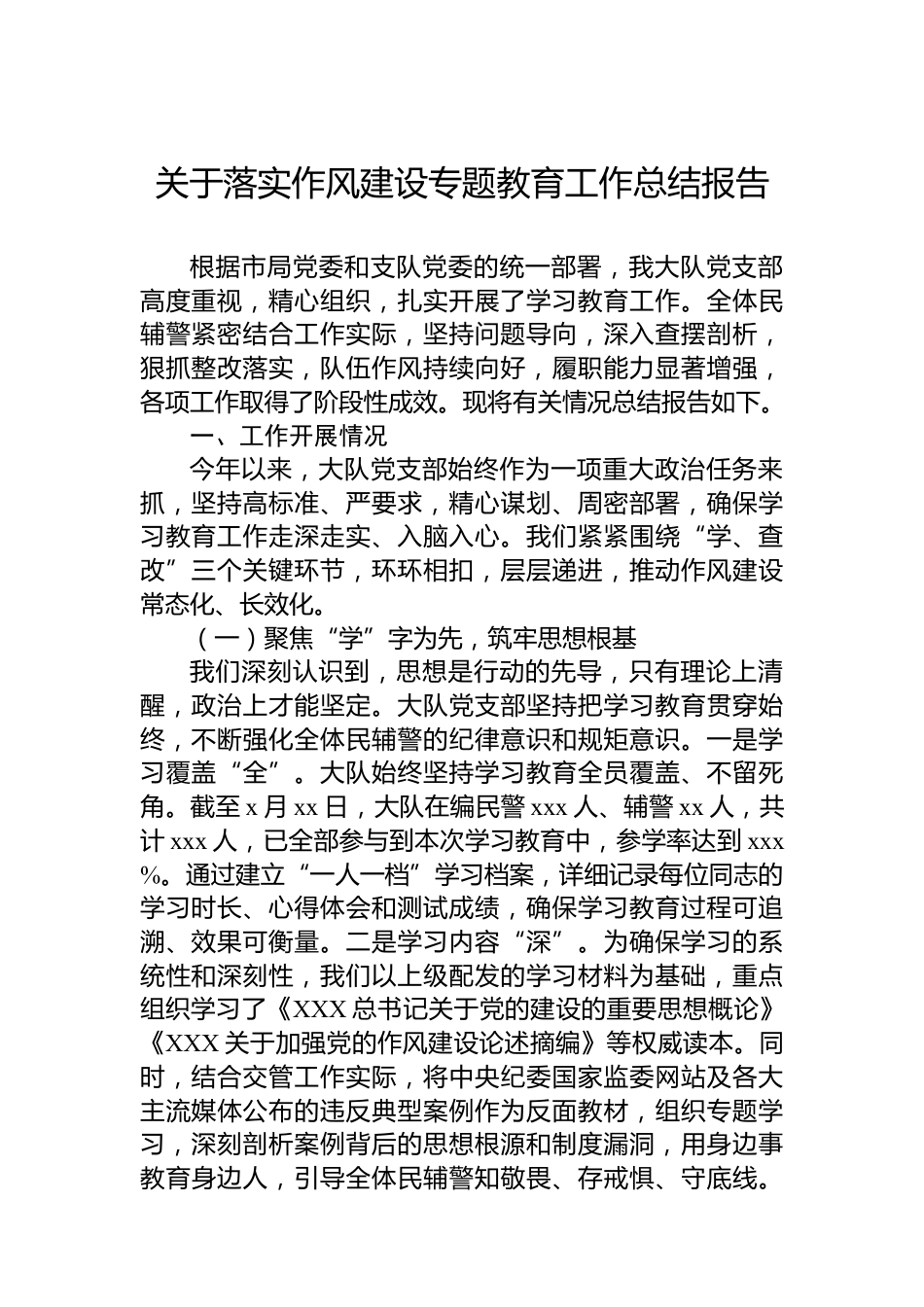關(guān)于落實作風(fēng)建設(shè)專題教育工作總結(jié)報告匯編(3篇)