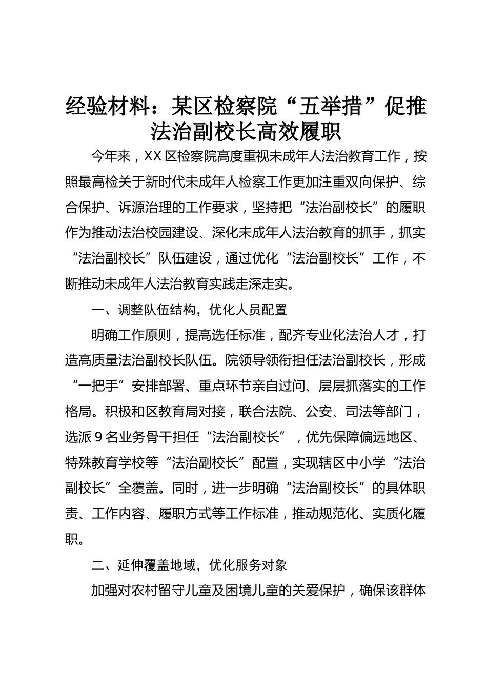經(jīng)驗(yàn)材料:某區(qū)檢察院“五舉措”促推法治副校長(zhǎng)高效履職