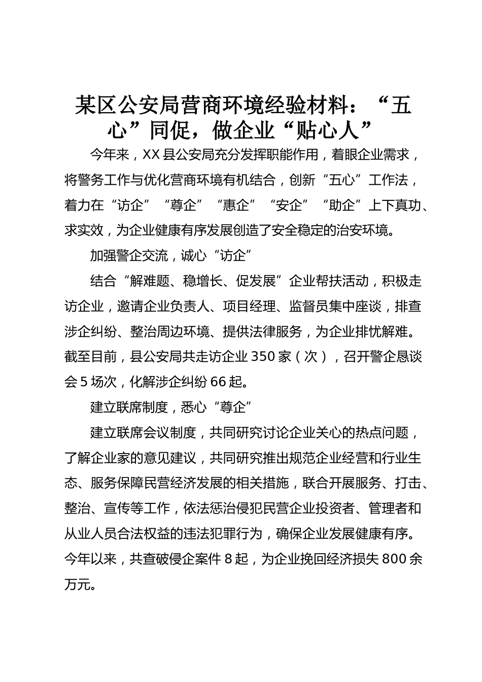 某區(qū)公安局營(yíng)商環(huán)境經(jīng)驗(yàn)材料:“五心”同促,做企業(yè)“貼心人”