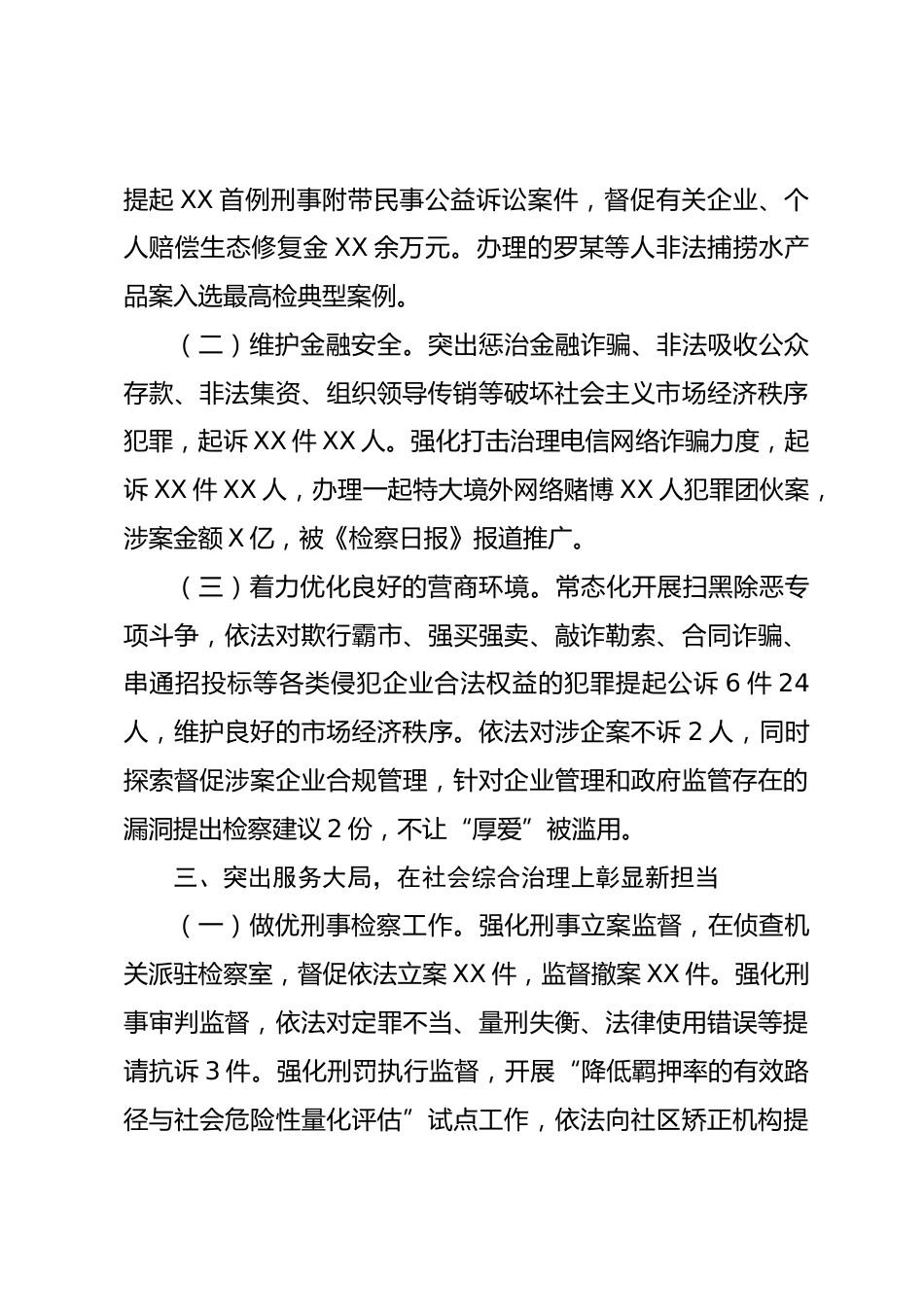 某區(qū)人民檢察院領(lǐng)導(dǎo)班子工作總結(jié)202X年,在區(qū)委和上級(jí)檢察機(jī)關(guān)的堅(jiān)強(qiáng)領(lǐng)導(dǎo)下,XX區(qū)院領(lǐng)導(dǎo)班子以XXX新時(shí)代中國(guó)特色社會(huì)主義思想為指導(dǎo),堅(jiān)持“講政治、顧大局、謀發(fā)展、重自強(qiáng)”的檢察工作總要求,以“XX”工作思路為主線,堅(jiān)持創(chuàng)新驅(qū)動(dòng)引領(lǐng),彰顯主干守衛(wèi)擔(dān)當(dāng),各項(xiàng)檢察工作取得新進(jìn)展。現(xiàn)將202X年度領(lǐng)導(dǎo)班子工作總結(jié)如下:一、突出理論武裝,在政治能力素質(zhì)上實(shí)現(xiàn)新提升院班子始終把學(xué)習(xí)作為一種政治責(zé)任、事業(yè)需要和精神追求,召開黨組中心組理論學(xué)習(xí)(擴(kuò)大)會(huì)11次,召開全院專題學(xué)習(xí)會(huì)13次,舉辦“X檢論壇”16期,帶領(lǐng)全院干警認(rèn)真學(xué)習(xí)XXX新時(shí)代中國(guó)特色社會(huì)主義思想...