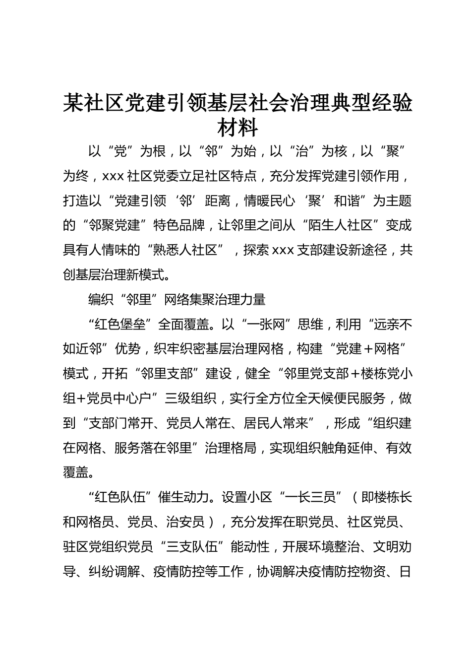 某社區(qū)黨建引領(lǐng)基層社會治理典型經(jīng)驗材料
