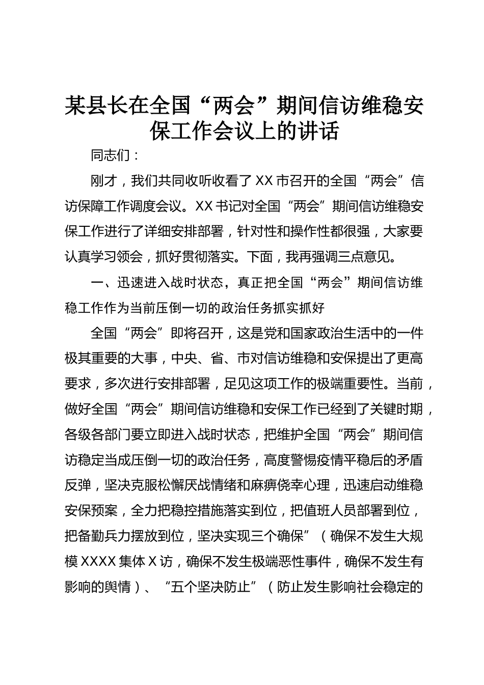 某縣長在全國“兩會(huì)”期間信訪維穩(wěn)安保工作會(huì)議上的講話