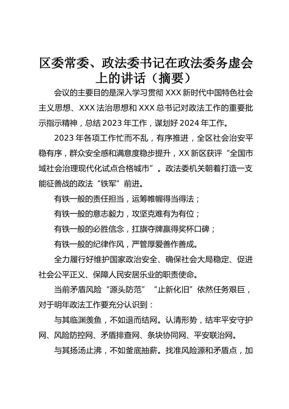 區(qū)委常委、政法委書(shū)記在政法委務(wù)虛會(huì)上的講話(摘要)