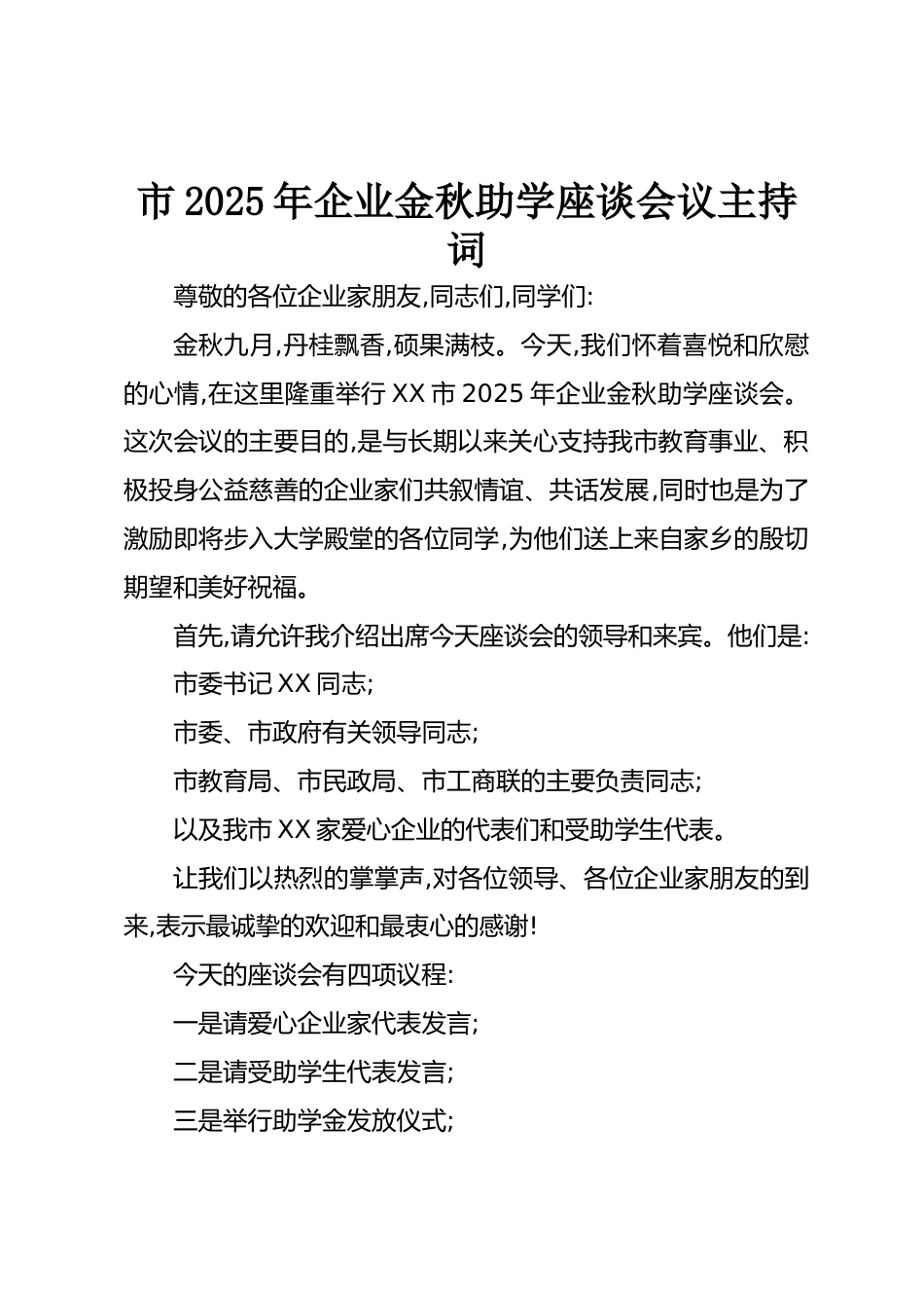 市2025年企業(yè)金秋助學(xué)座談會(huì)議主持詞