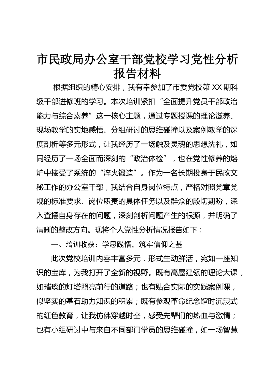 市民政局辦公室干部黨校學習黨性分析報告材料