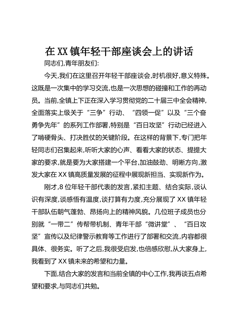 在XX鎮(zhèn)年輕干部座談會(huì)上的講話