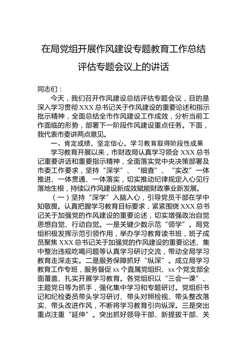 在局黨組開展作風(fēng)建設(shè)專題教育工作總結(jié)評估專題會(huì)議上的講話材料匯編(10篇)