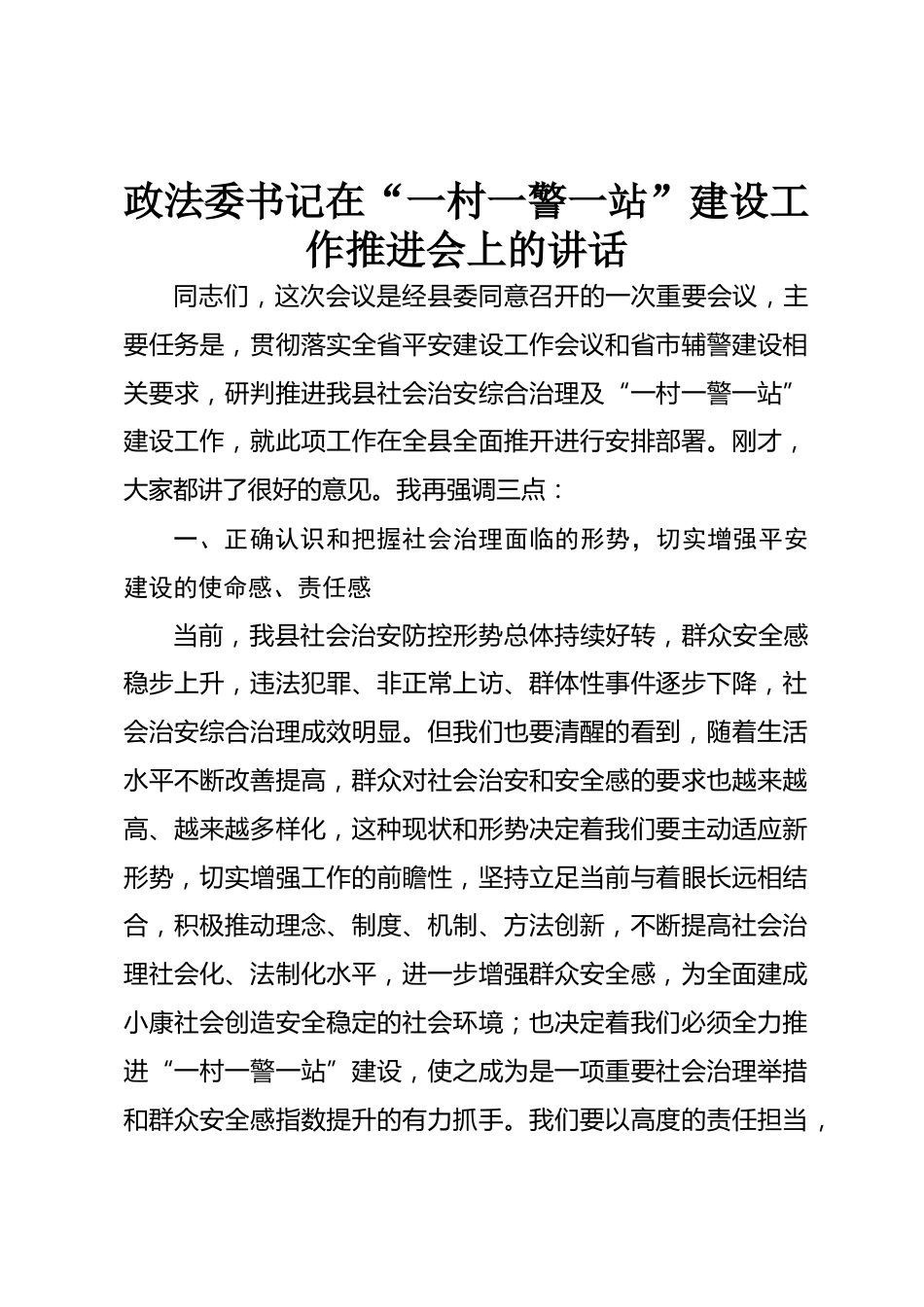 政法委書記在“一村一警一站”建設(shè)工作推進(jìn)會上的講話