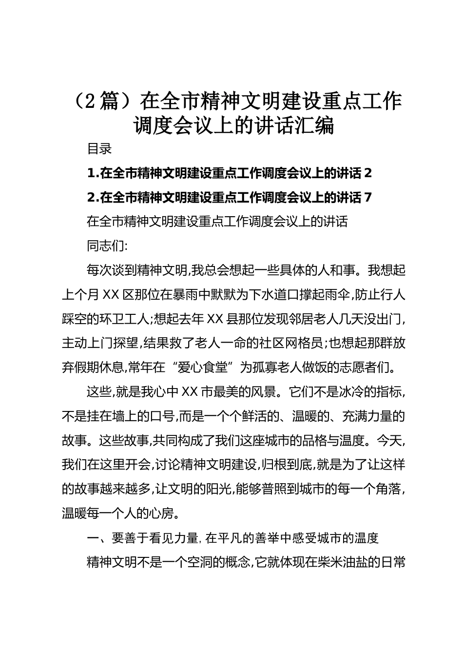 (2篇)在全市精神文明建設(shè)重點(diǎn)工作調(diào)度會(huì)議上的講話匯編