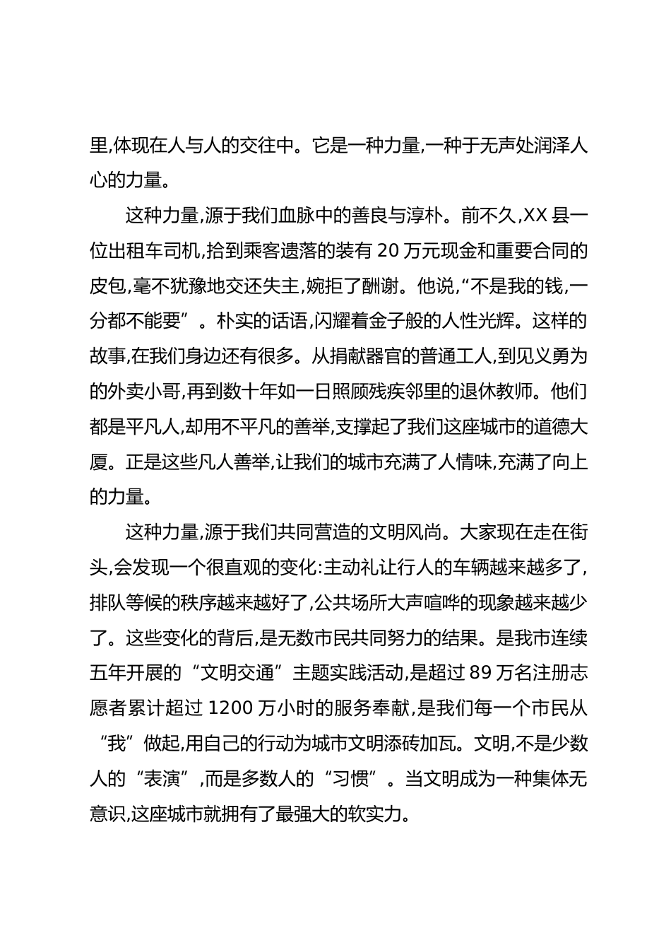 (2篇)在全市精神文明建設(shè)重點(diǎn)工作調(diào)度會(huì)議上的講話匯編目錄1.在全市精神文明建設(shè)重點(diǎn)工作調(diào)度會(huì)議上的講話22.在全市精神文明建設(shè)重點(diǎn)工作調(diào)度會(huì)議上的講話7在全市精神文明建設(shè)重點(diǎn)工作調(diào)度會(huì)議上的講話同志們:每次談到精神文明,我總會(huì)想起一些具體的人和事。我想起上個(gè)月XX區(qū)那位在暴雨中默默為下水道口撐起雨傘,防止行人踩空的環(huán)衛(wèi)工人;想起去年XX縣那位發(fā)現(xiàn)鄰居老人幾天沒出門,主動(dòng)上門探望,結(jié)果救了老人一命的社區(qū)網(wǎng)格員;也想起那群放棄假期休息,常年在“愛心食堂”為孤寡老人做飯的志愿者們。這些,就是我心中XX市最美的風(fēng)景。它們不是冰冷的指標(biāo),不是掛在墻上的口...