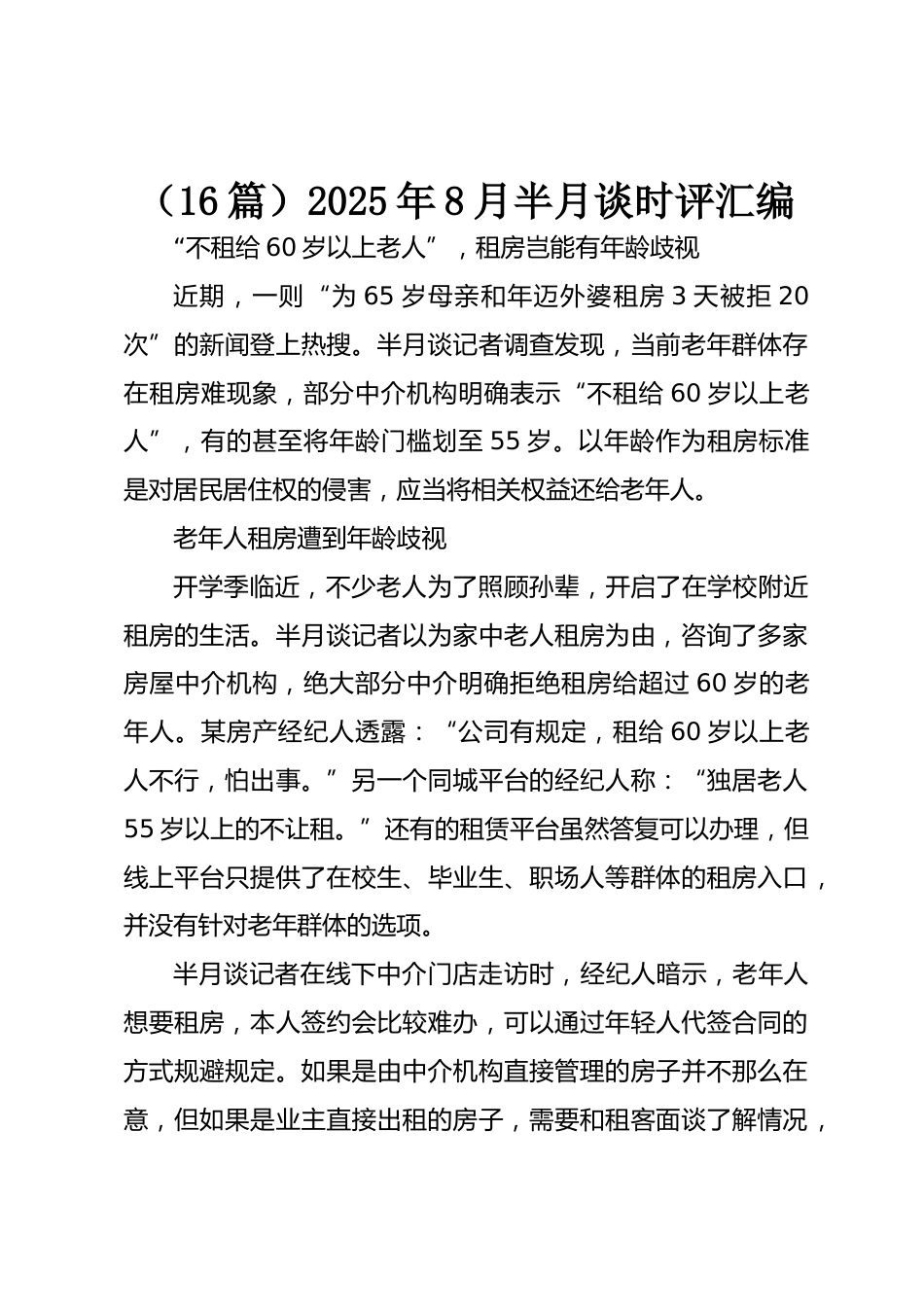 (16篇)2025年8月半月談時(shí)評(píng)匯編