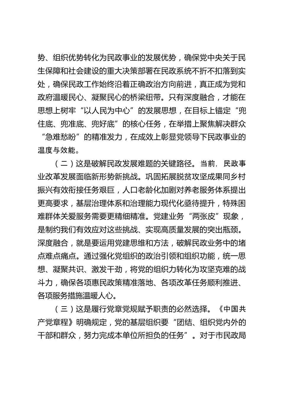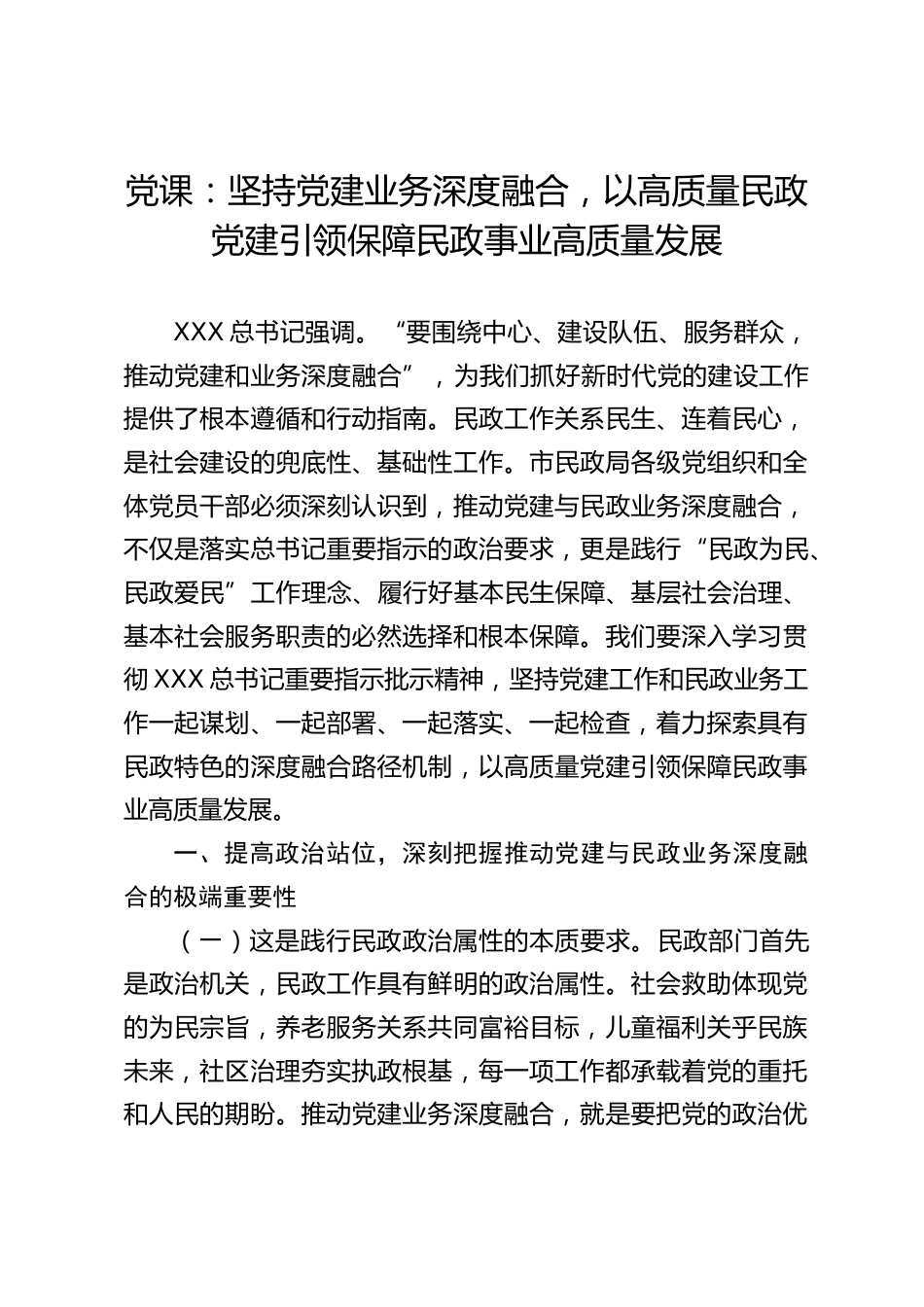 黨課:堅持黨建業(yè)務(wù)深度融合,以高質(zhì)量民政黨建引領(lǐng)保障民政事業(yè)高質(zhì)量發(fā)展
