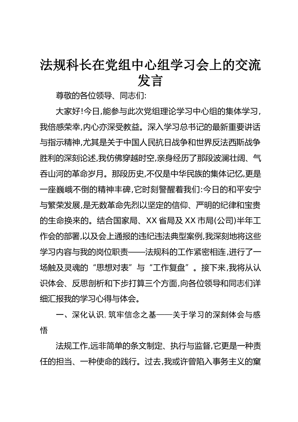 法規(guī)科長在黨組中心組學(xué)習(xí)會(huì)上的交流發(fā)言