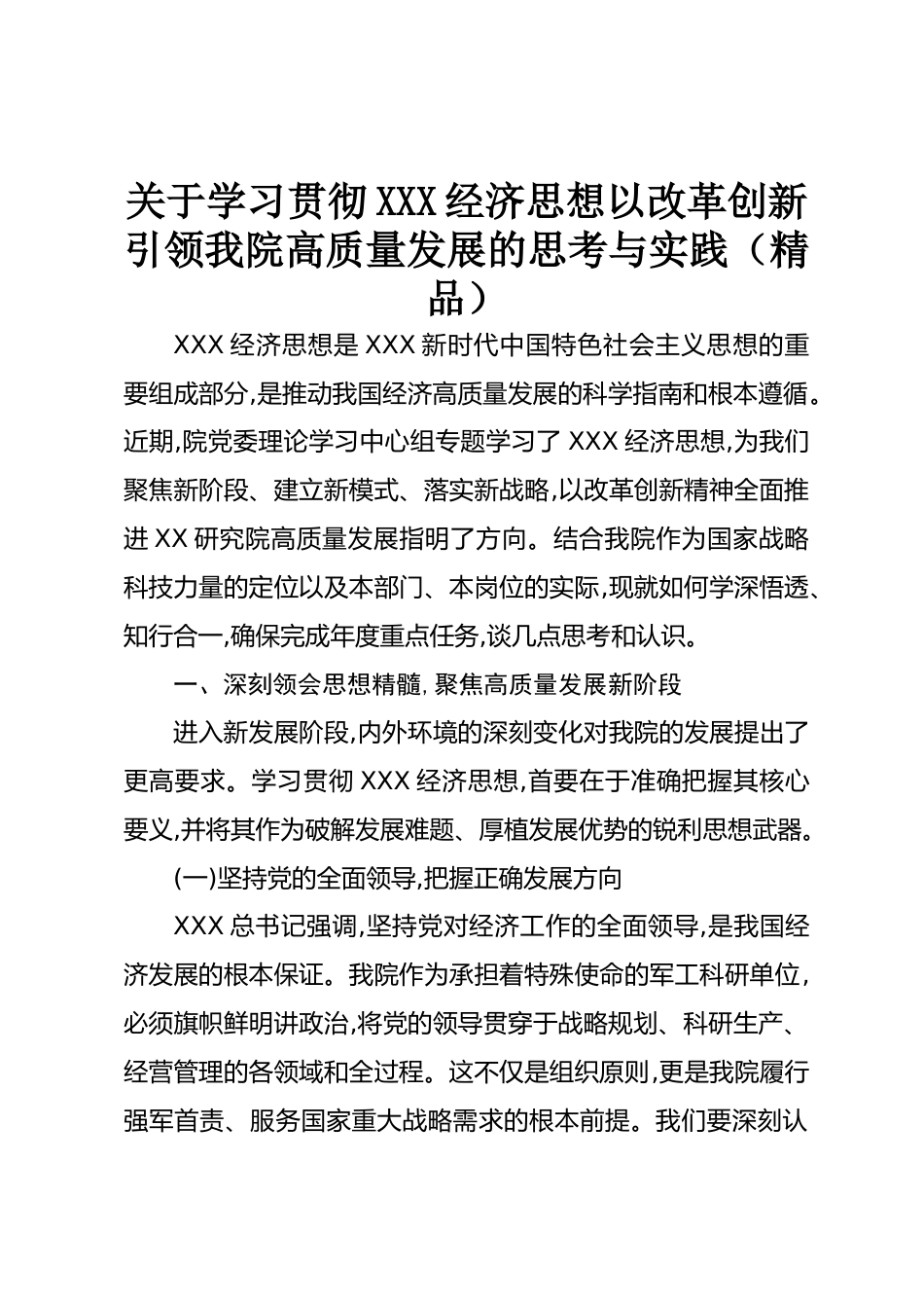 關(guān)于學習貫徹習近平經(jīng)濟思想以改革創(chuàng)新引領我院高質(zhì)量發(fā)展的思考與實踐(精品)