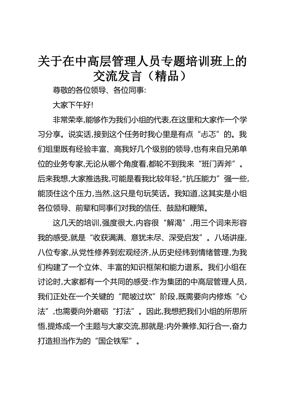 關(guān)于在中高層管理人員專題培訓(xùn)班上的交流發(fā)言(精品)