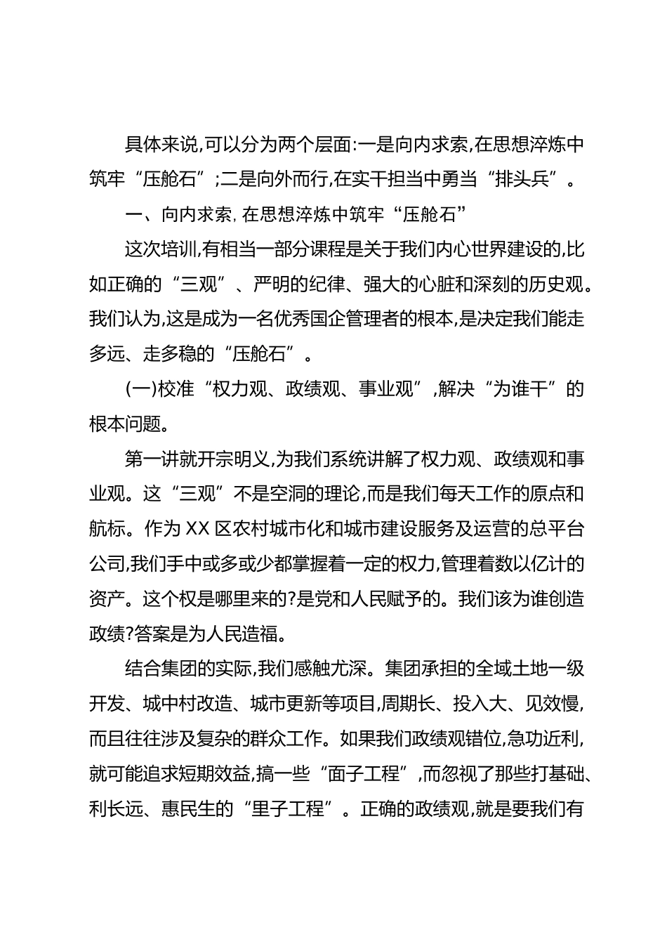 關(guān)于在中高層管理人員專題培訓(xùn)班上的交流發(fā)言(精品)尊敬的各位領(lǐng)導(dǎo)、各位同事:大家下午好!非常榮幸,能夠作為我們小組的代表,在這里和大家作一個學(xué)習(xí)分享。說實話,接到這個任務(wù)時我心里是有點“忐忑”的。我們組里既有經(jīng)驗豐富、高我好幾個級別的領(lǐng)導(dǎo),也有來自兄弟單位的業(yè)務(wù)專家,無論從哪個角度看,都輪不到我來“班門弄斧”。后來我想,大家推選我,可能是看我比較年輕,“抗壓能力”強一些,能頂住這個壓力,當然,這只是句玩笑話。我知道,這其實是小組各位領(lǐng)導(dǎo)、前輩和同事們對我的信任、鼓勵和鞭策。這幾天的培訓(xùn),強度很大,內(nèi)容很“解渴”,用三個詞來形容我的感受,就是“...