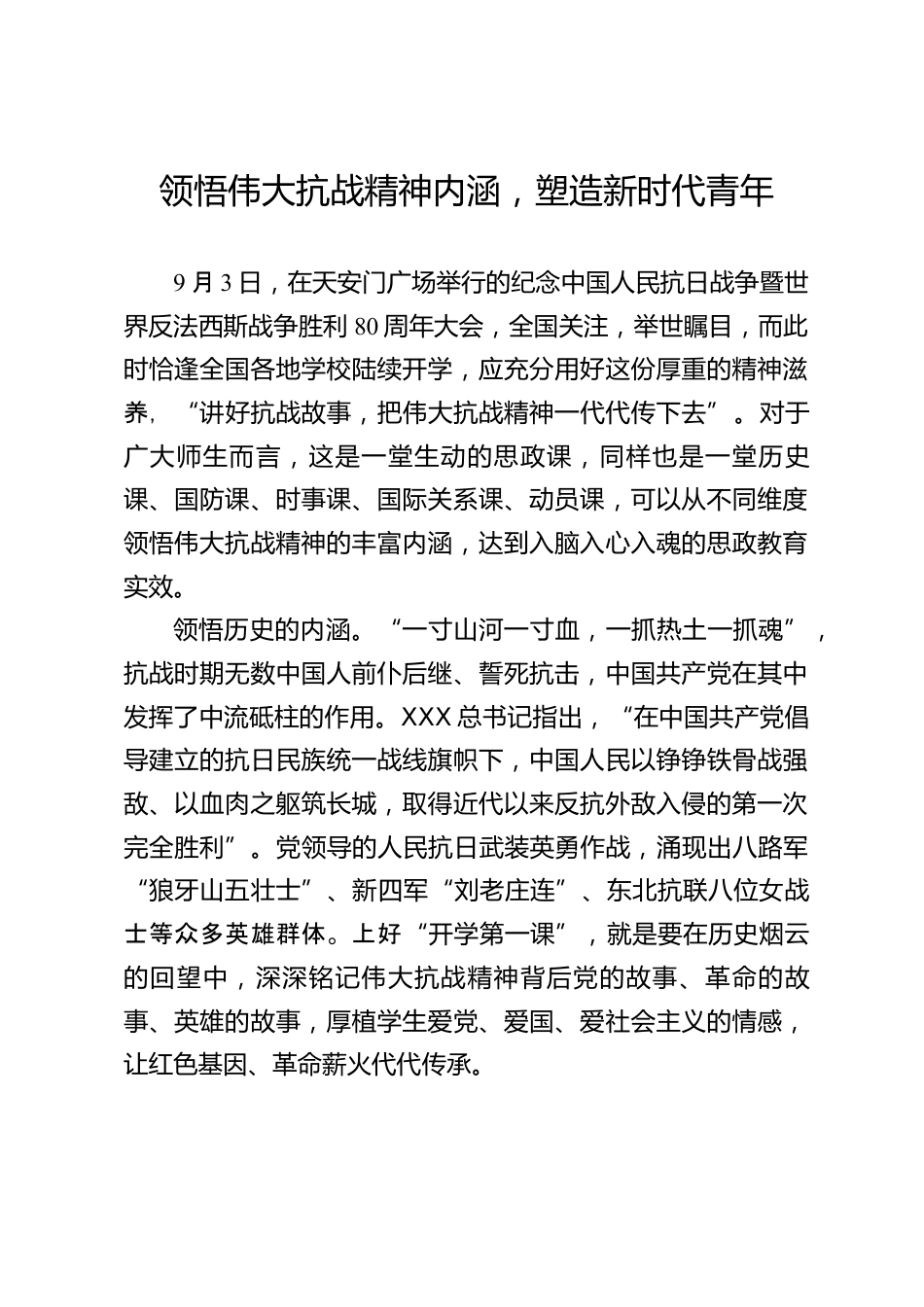 領悟偉大抗戰(zhàn)精神內(nèi)涵,塑造新時代青年