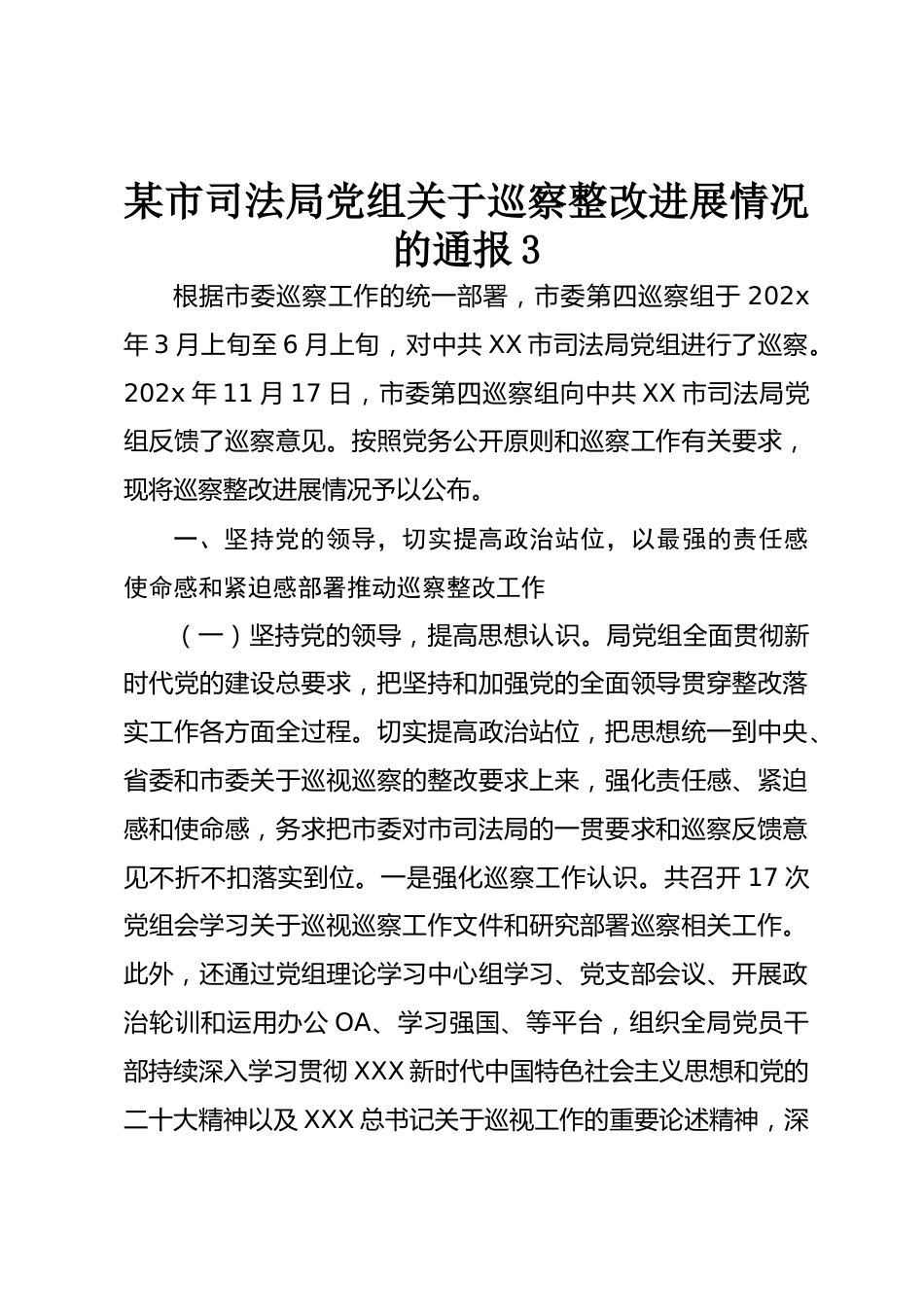 某市司法局黨組關(guān)于巡察整改進(jìn)展情況的通報(bào)3