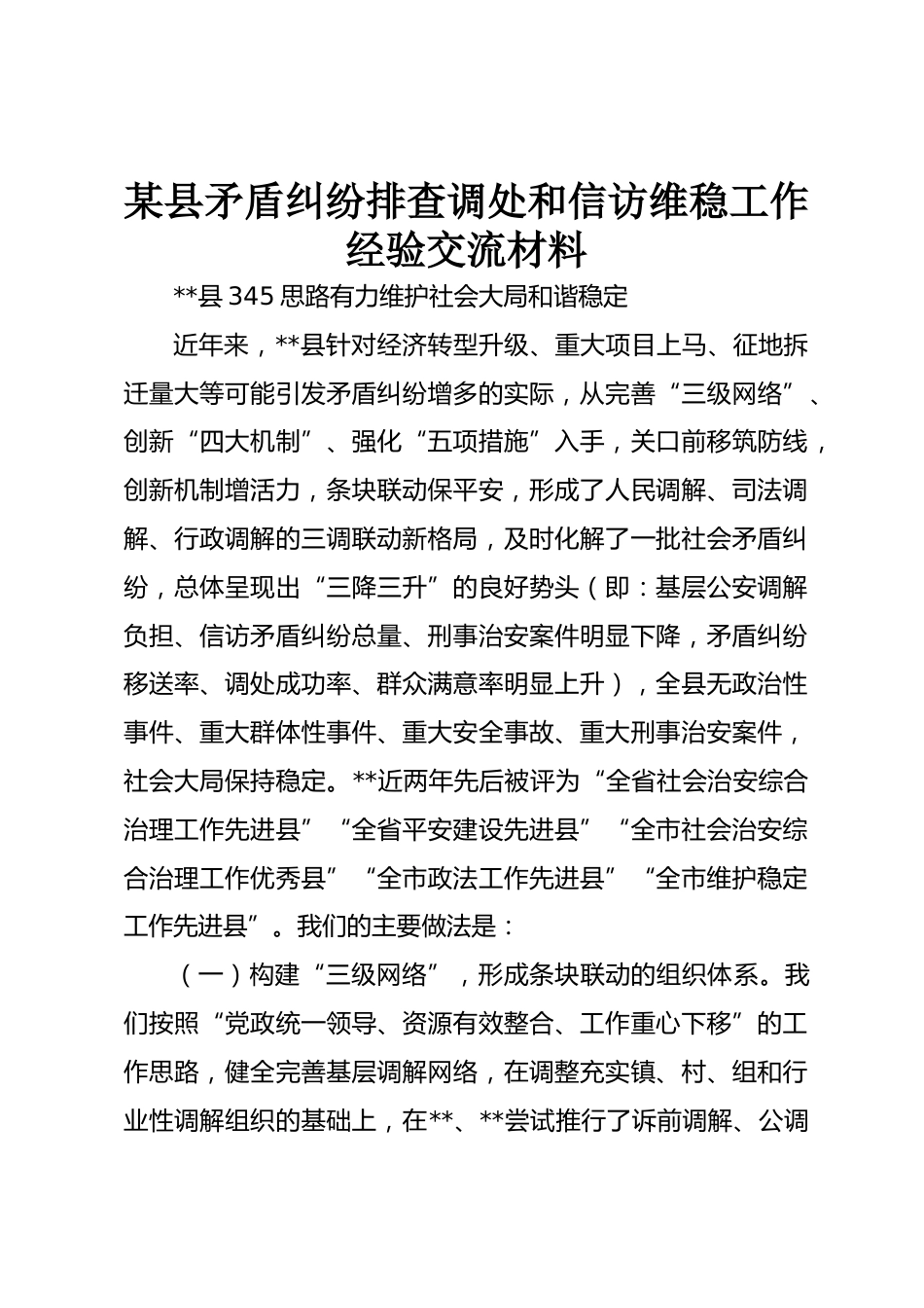 某縣矛盾糾紛排查調(diào)處和信訪維穩(wěn)工作經(jīng)驗(yàn)交流材料