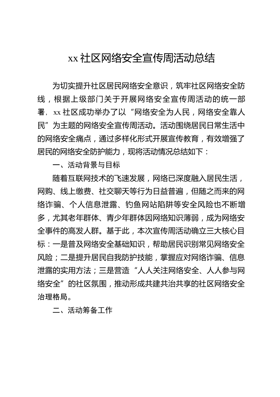 社區(qū)網(wǎng)絡安全宣傳周活動總結(jié)