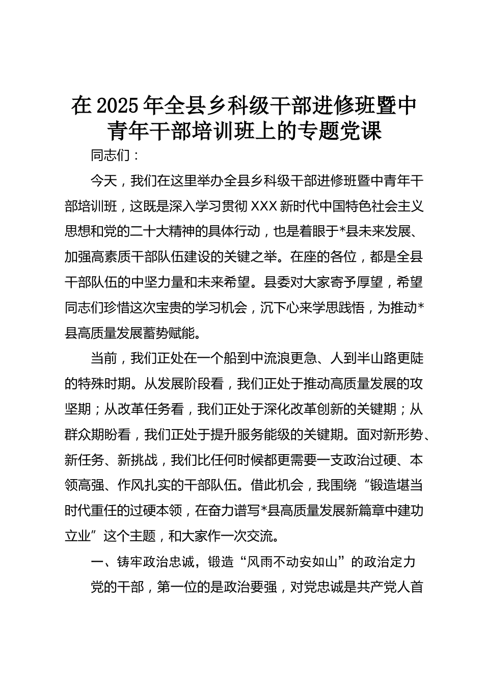 在2025年全縣鄉(xiāng)科級(jí)干部進(jìn)修班暨中青年干部培訓(xùn)班上的專題黨課