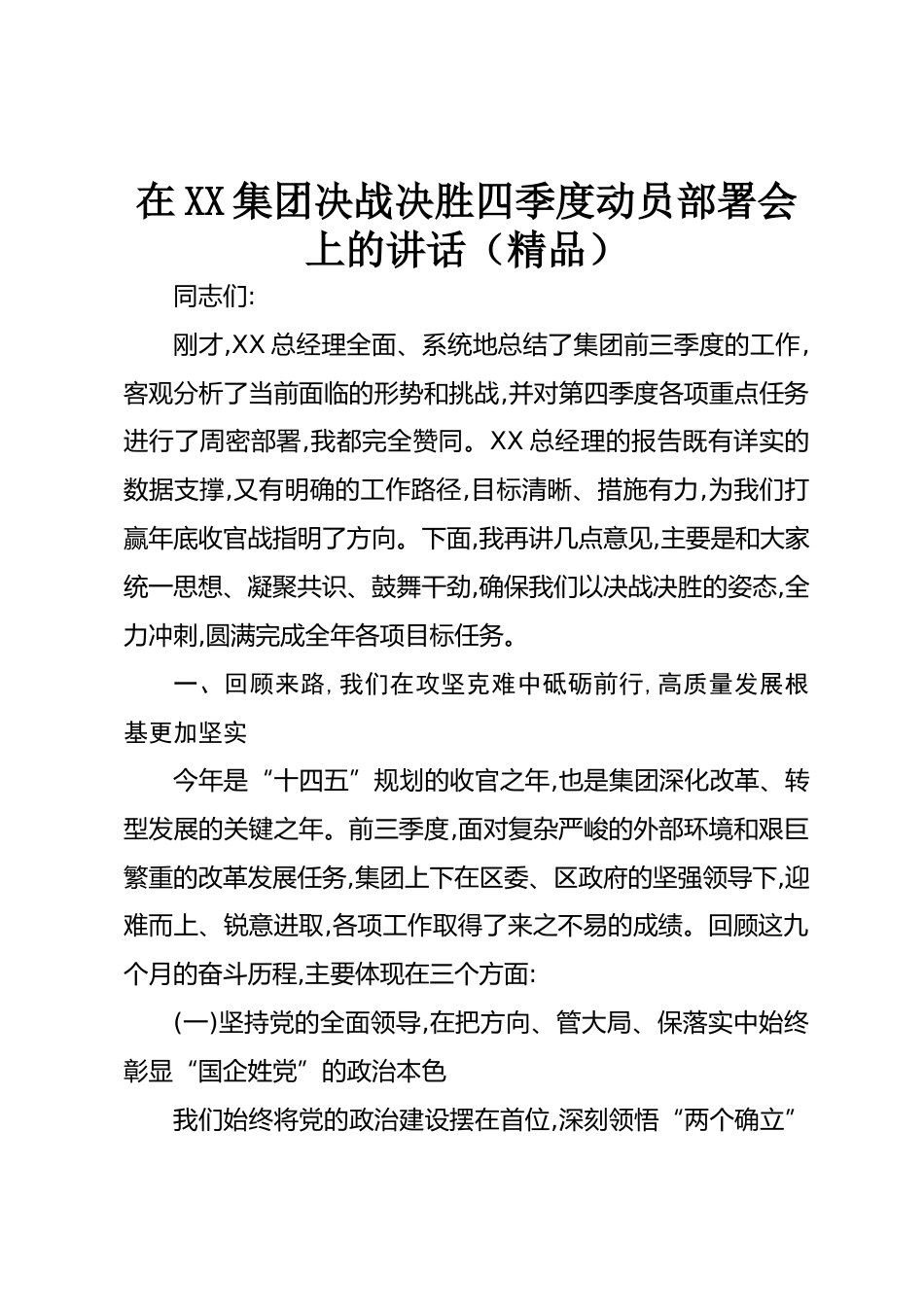 在XX集團決戰(zhàn)決勝四季度動員部署會上的講話(精品)