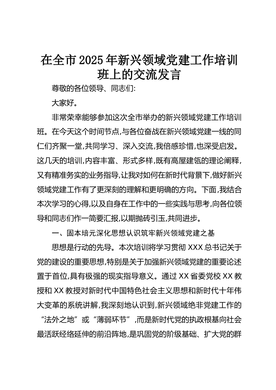 在全市2025年新興領(lǐng)域黨建工作培訓(xùn)班上的交流發(fā)言VIP免費