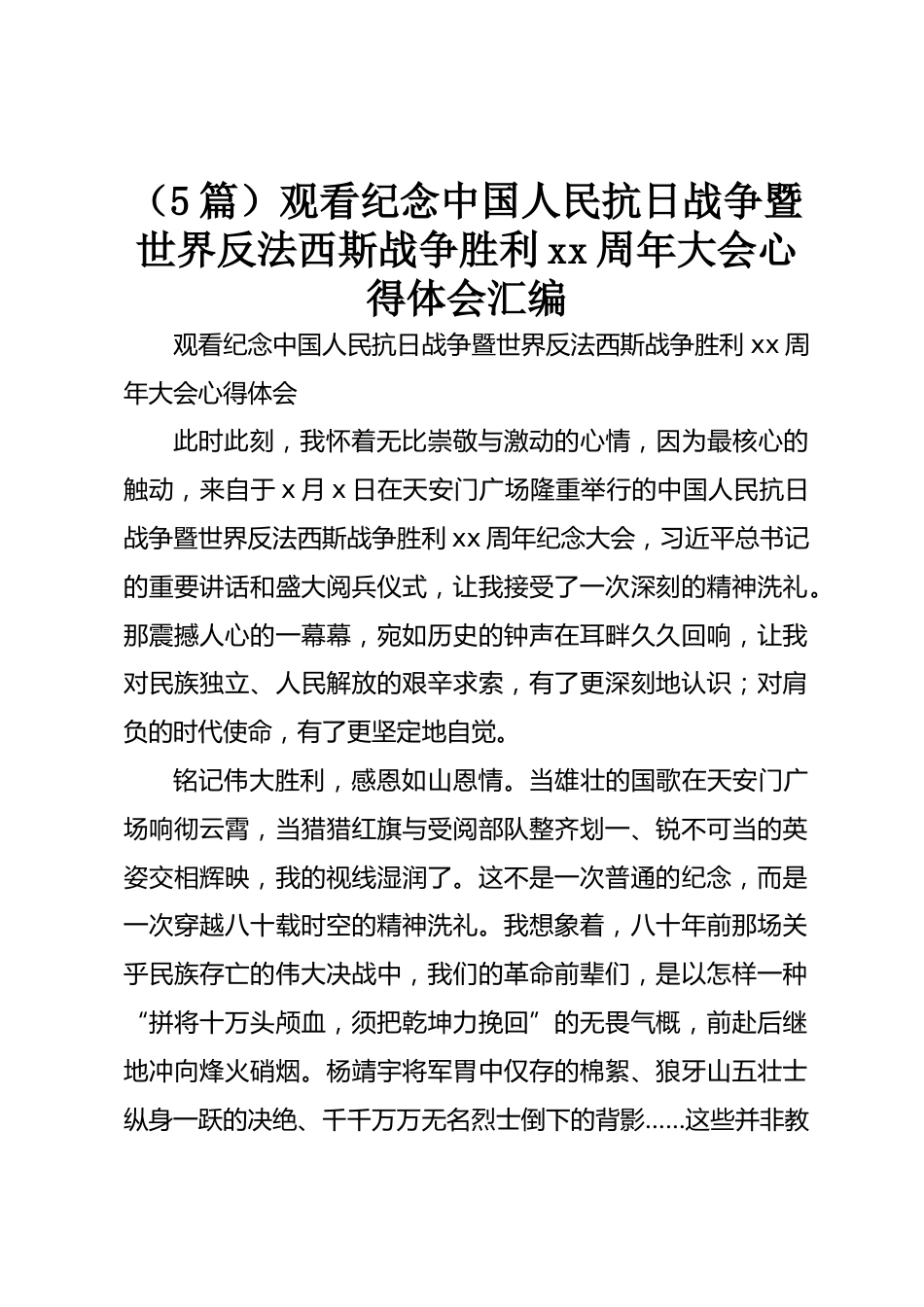 (5篇)觀看紀念中國人民抗日戰(zhàn)爭暨世界反法西斯戰(zhàn)爭勝利xx周年大會心得體會匯編