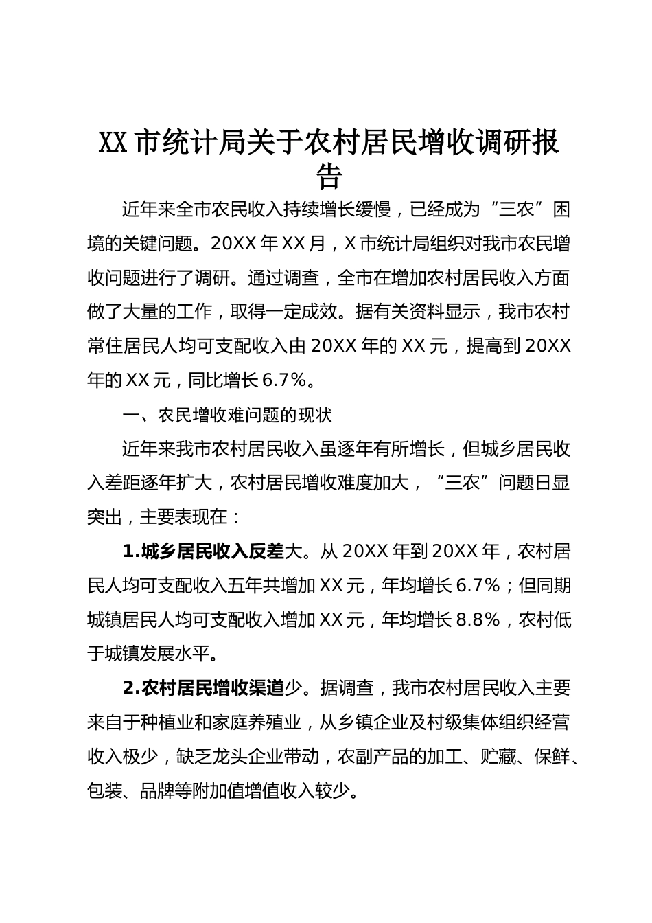 XX市統(tǒng)計(jì)局關(guān)于農(nóng)村居民增收調(diào)研報(bào)告