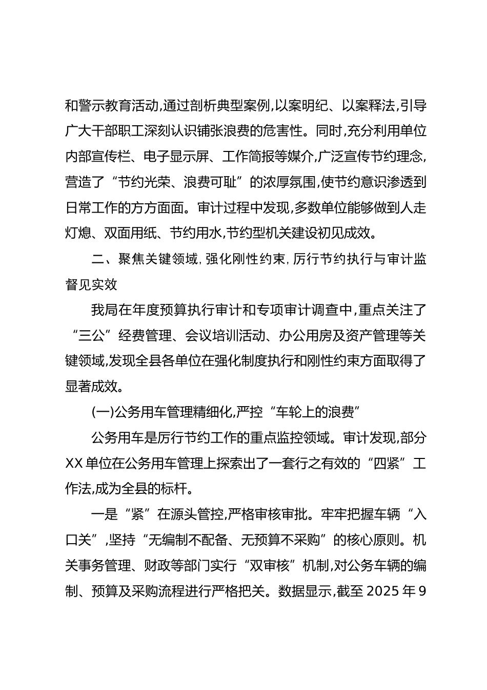 XX縣審計(jì)局關(guān)于2025年度黨政機(jī)關(guān)厲行節(jié)約工作開展情況的匯報(bào)(精品)
