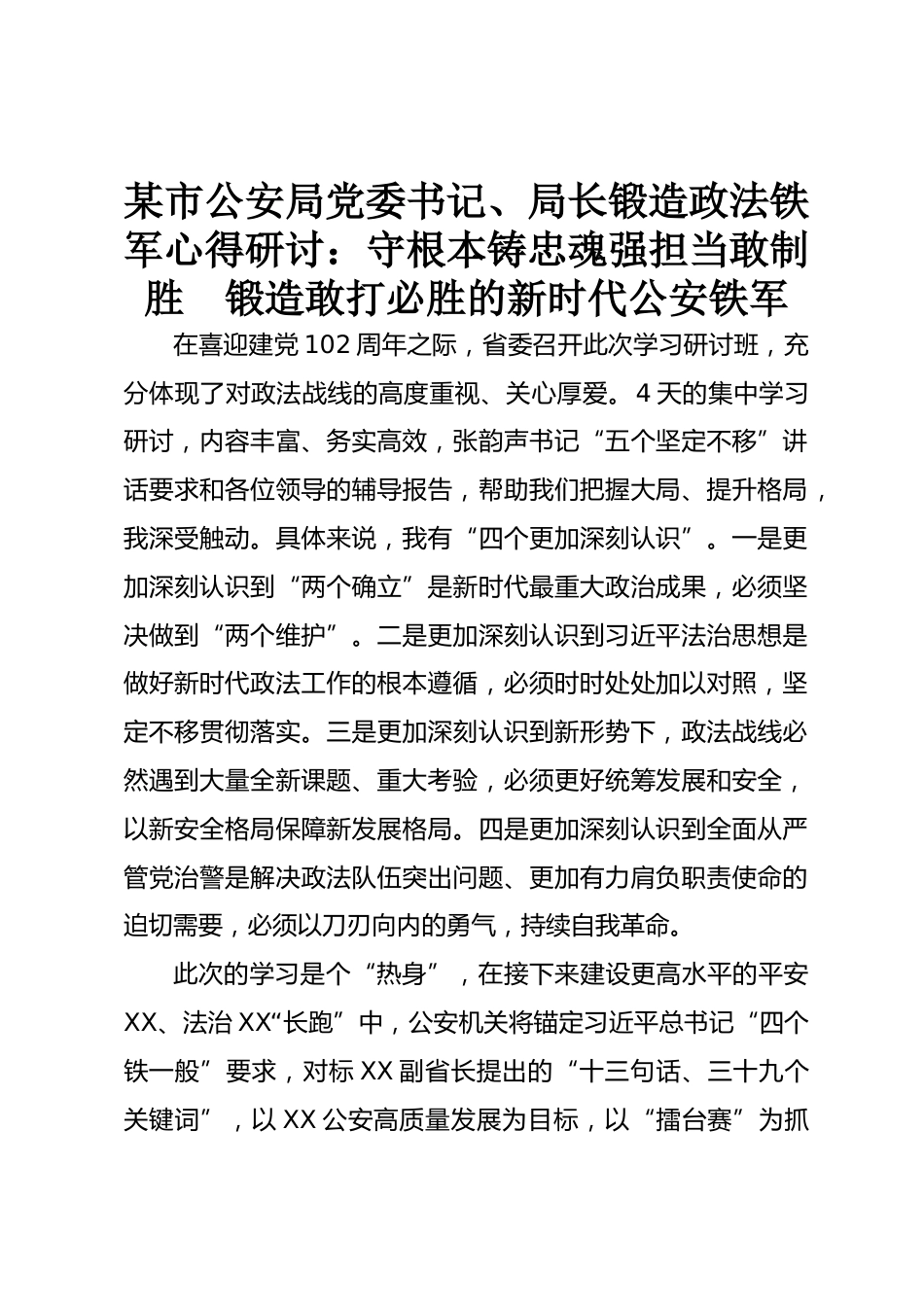 某市公安局黨委書記、局長鍛造政法鐵軍心得研討:守根本鑄忠魂 強擔當敢制勝 鍛造敢打必勝的新時代公安鐵軍