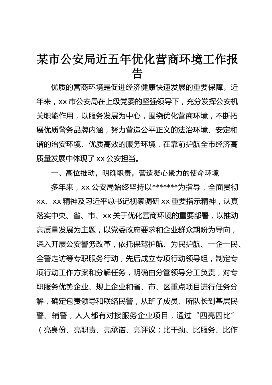 某市公安局近五年優(yōu)化營商環(huán)境工作報告