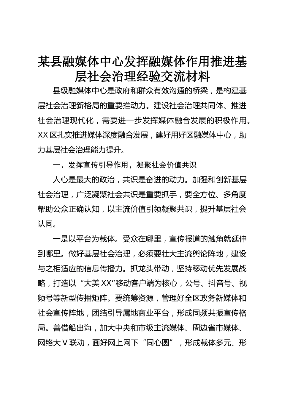 某縣融媒體中心發(fā)揮融媒體作用推進(jìn)基層社會治理經(jīng)驗交流材料