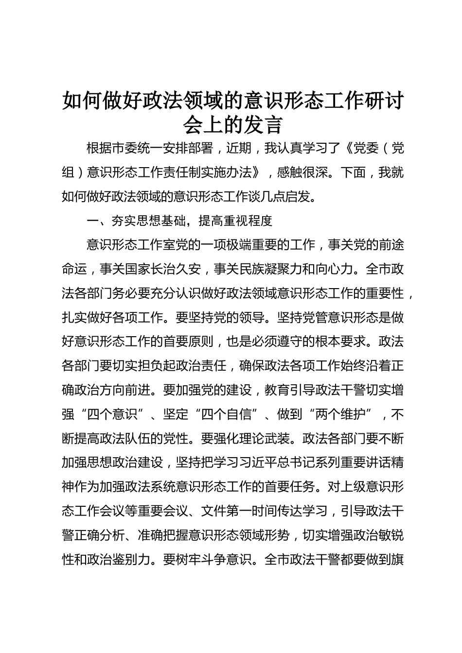 如何做好政法領(lǐng)域的意識形態(tài)工作研討會上的發(fā)言