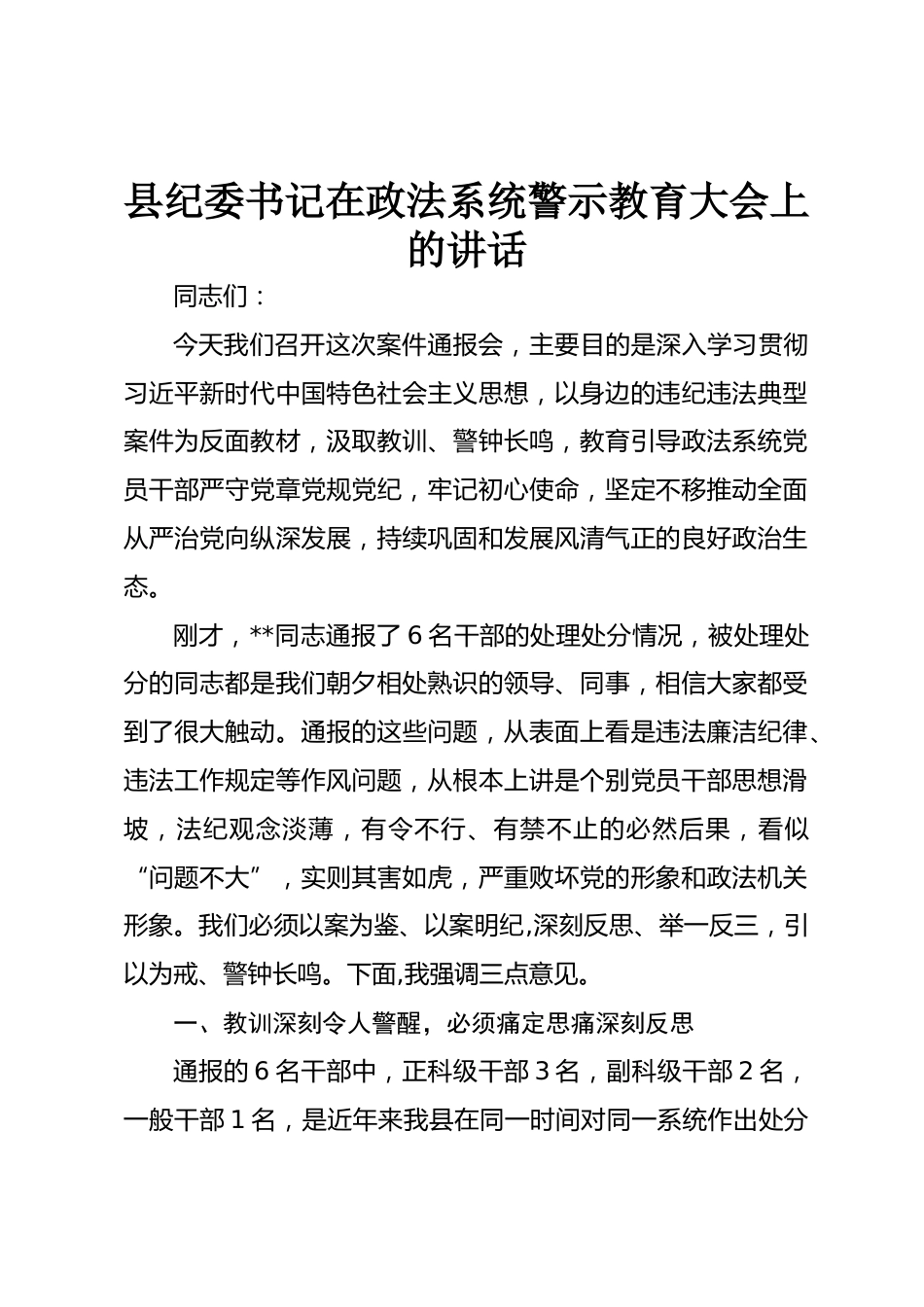 縣紀(jì)委書記在政法系統(tǒng)警示教育大會上的講話VIP免費(fèi)