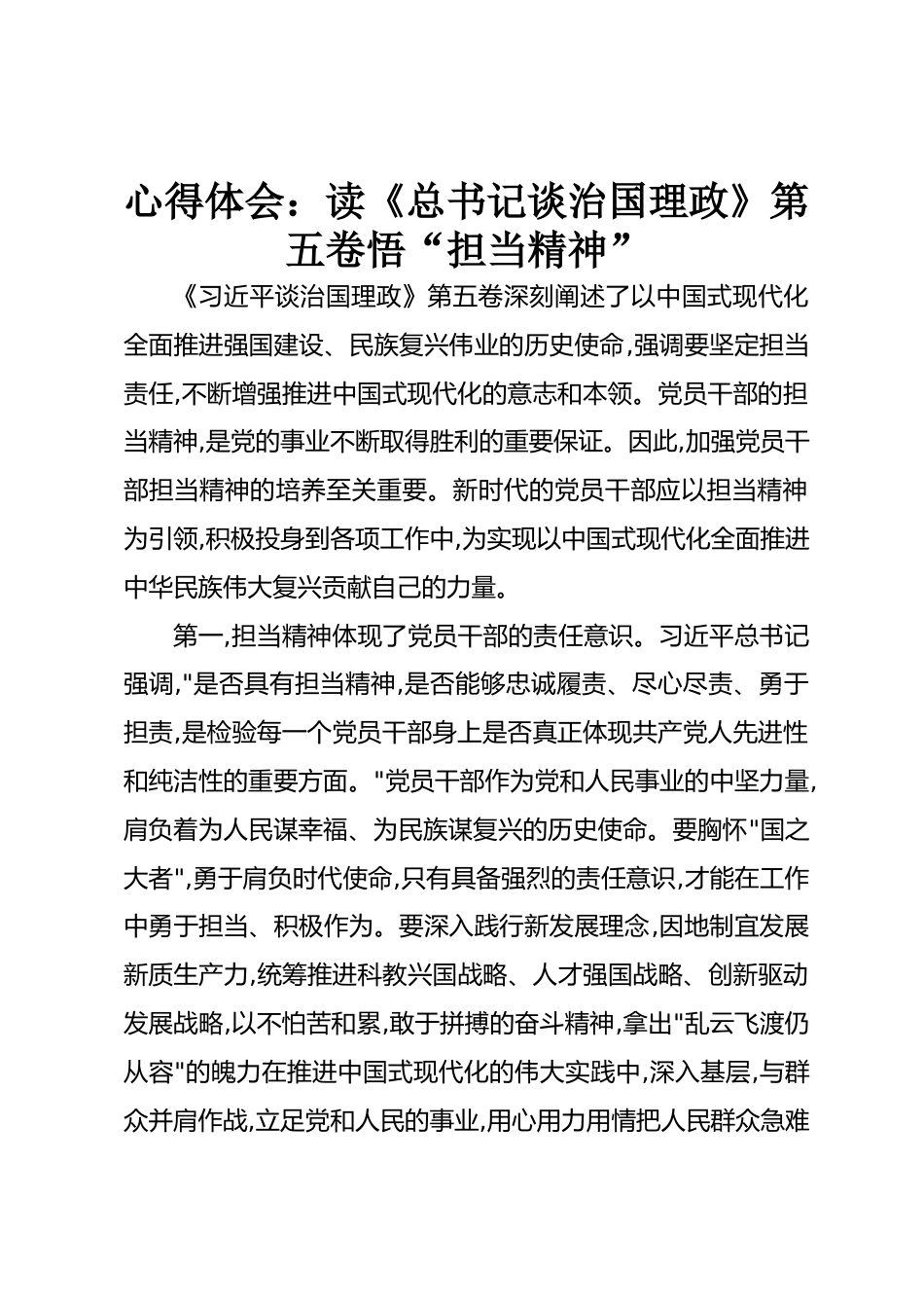 心得體會(huì):讀《總書記談治國(guó)理政》第五卷悟“擔(dān)當(dāng)精神”