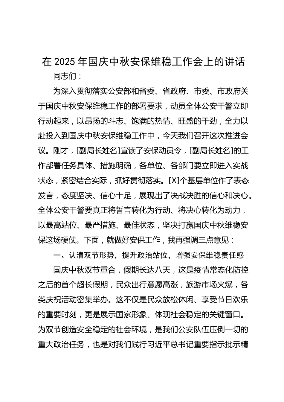 在2025年國(guó)慶中秋安保維穩(wěn)工作會(huì)上的講話